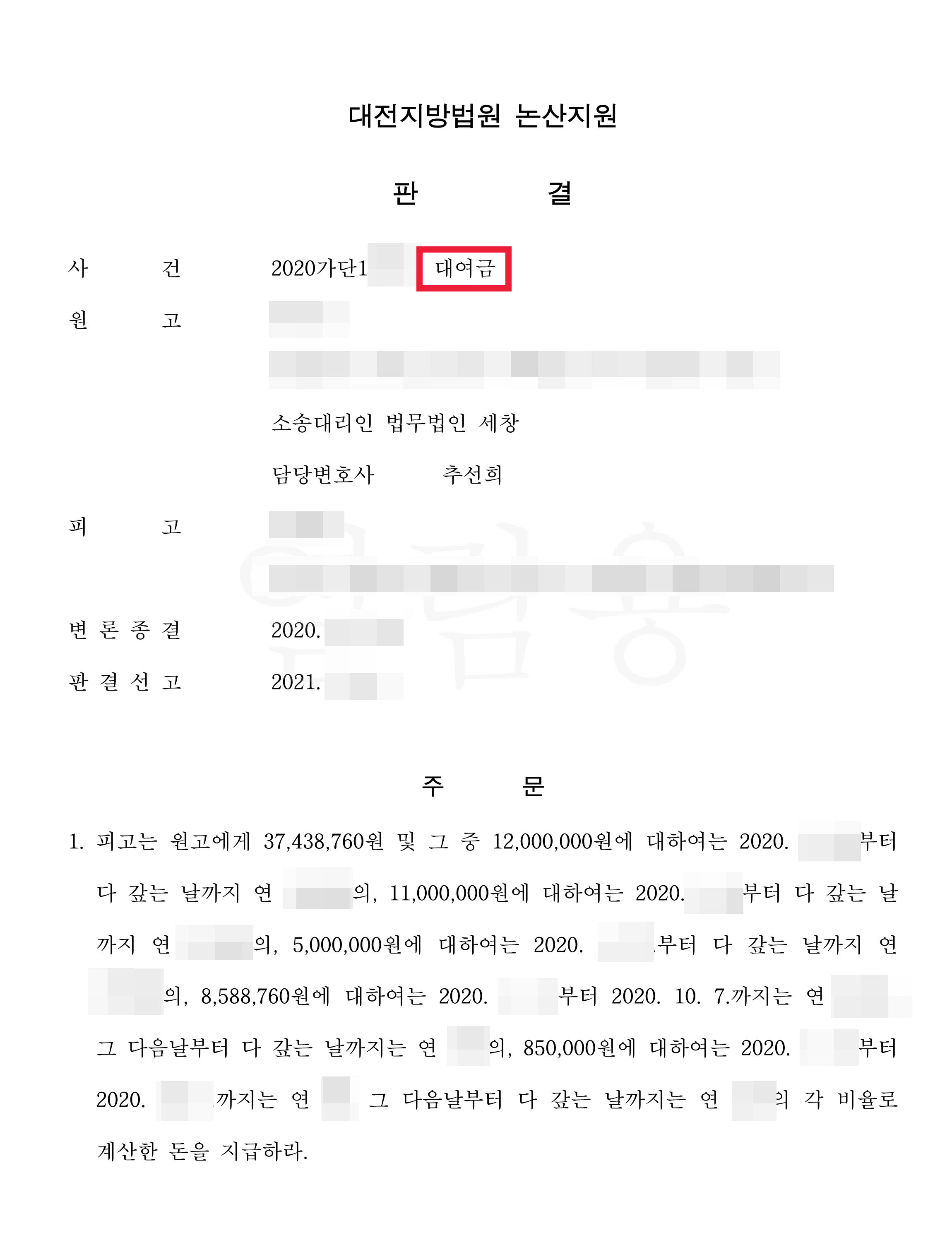 그결과 재판부는 의뢰인이 피고에서 생활자금으로 조건없이 지급하였다고 보기에 어렵고, 쌍방 사이에 대출을 어떻게 진행할 것인지에 대해 논의한 점을 들어 대출금을 책임지고 갚기고 하는 내용의 약정이 있었다고 보고 의뢰인의 손을 들어주었습니다.
