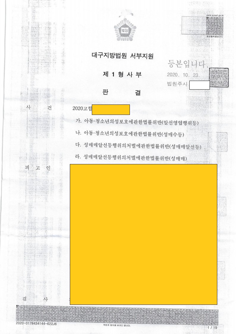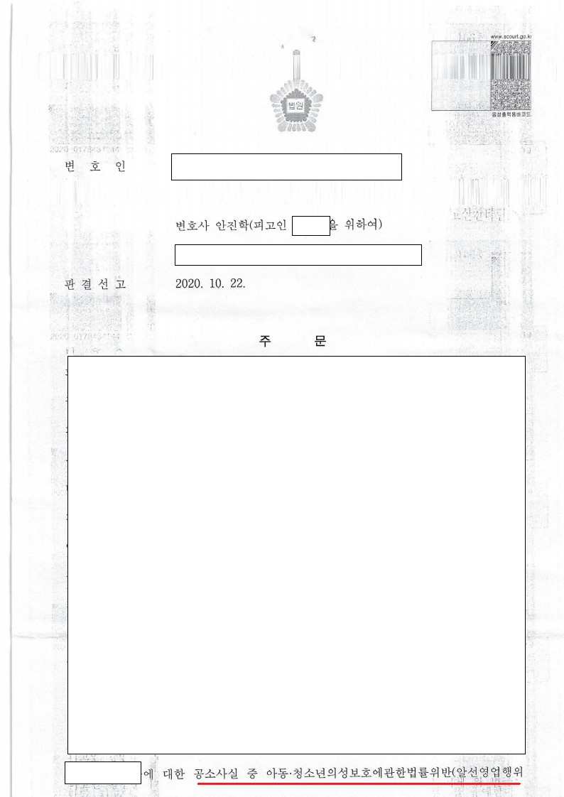 이번사건은 아동청소년성보호등에관한법률위반(영업알선등)의 혐의로 재판이 진행이 되어 법원에서 무죄가 선고된 사건입니다.