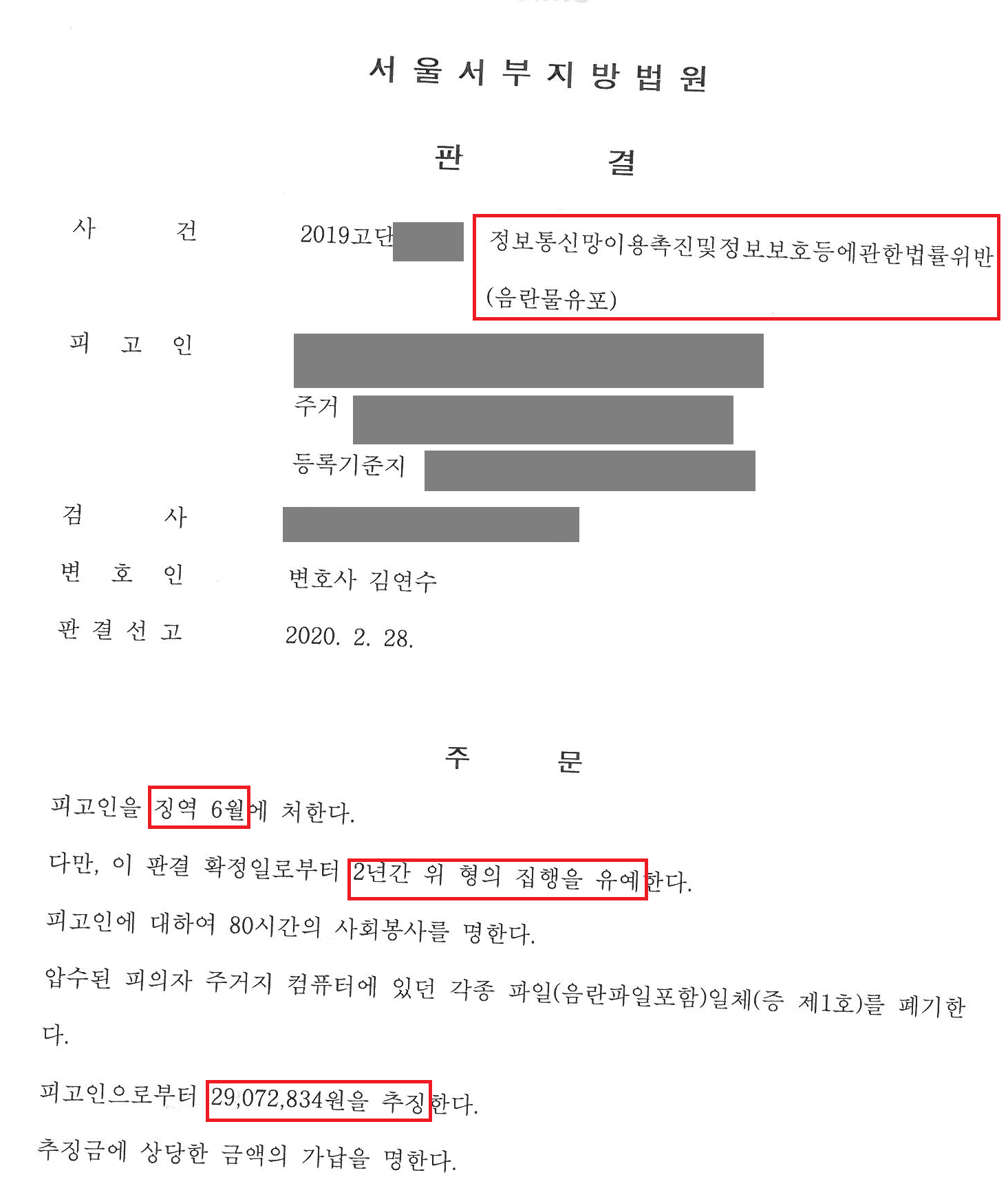 법원은 의뢰인에게 징역 6월에 집행유예 2년, 추징금 2,900만원의 판결을 선고하였습니다. 덕분에 의뢰인은 실형을 면하고 추징 액수를 줄여 경제적인 피해 또한 최소화할 수 있었습니다.