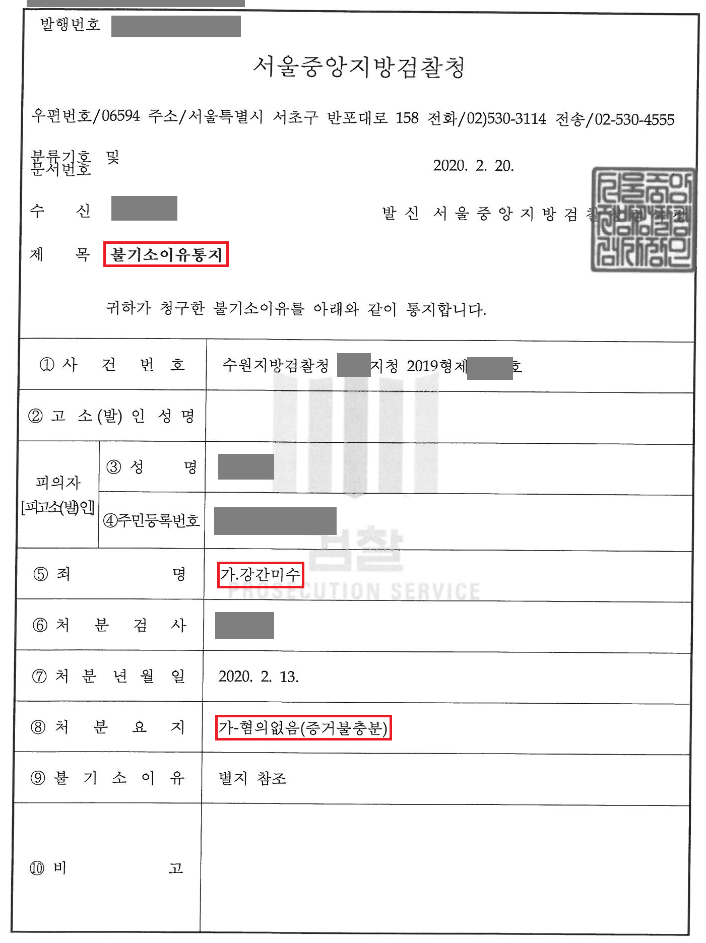 의뢰인은 너무 긴장한 나머지 거짓말 탐지조사 결과가 거짓반응이 나왔음에도 불구하고, 검찰은 반항을 억압하여 강제로 간음하려 한 사실을 인정하기에 부족하다며 의뢰인에게 무혐의 처분을 내렸습니다. 덕분에 의뢰인은 아무런 형사 처벌의 기록도 남기지 않고 일상으로 복귀할 수 있었습니다.