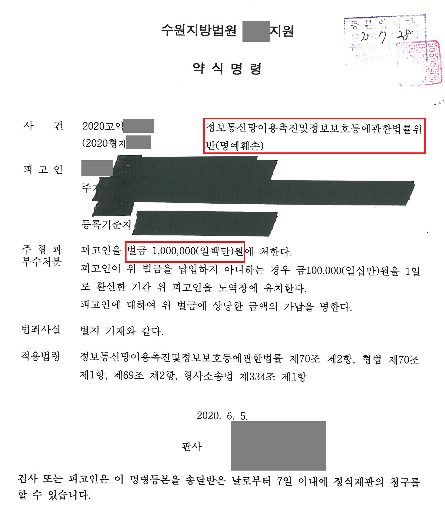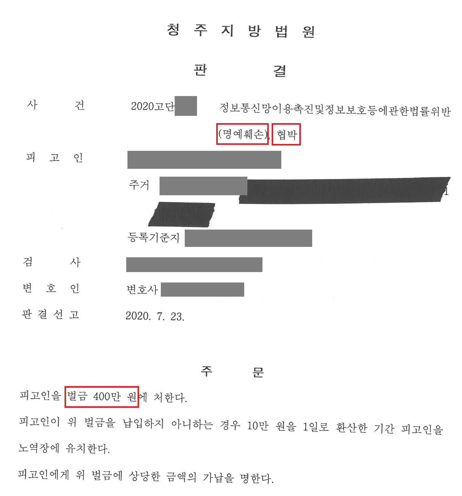법원은 가해자의 혐의를 인정하고 벌금 400만원을 선고하였습니다. 가해자는 오랫동안 정신과에서 치료를 받았다면서 진료내역을 제출하였지만 처벌을 피하지는 못하였고, 전 남자친구의 SNS 글에 동조하여 의뢰인을 비방하였던 다른 사람들 역시 벌금형에 처해졌습니다. 검찰은 가해자인 전 남자친구에 대한 양형이 너무 약하다며 항소를 하였고 현재 항소심이 진행 중입니다.