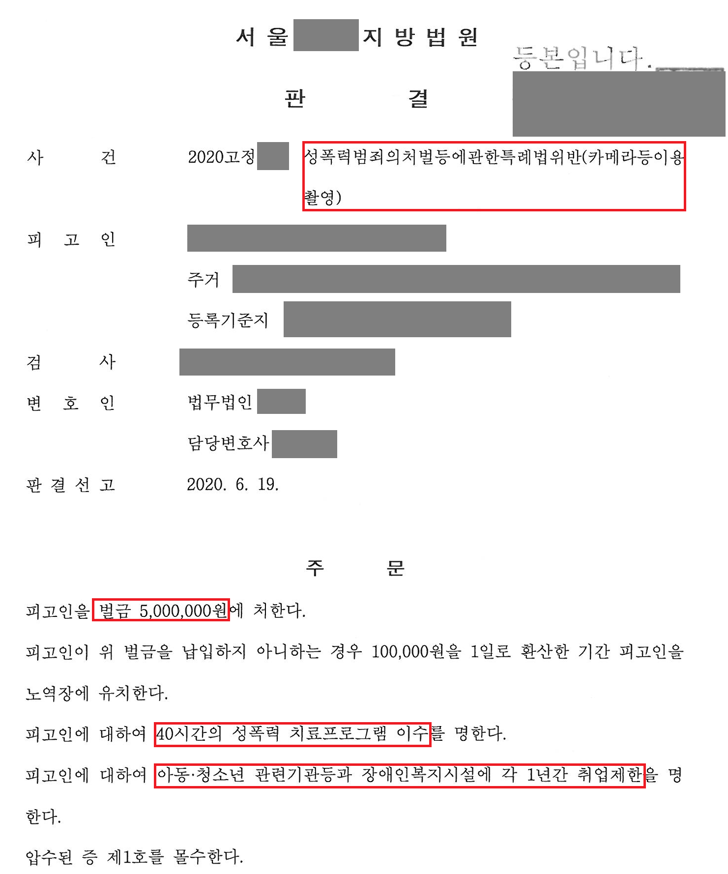 저는 가해자와 5,000만원에 합의를 하였고 의뢰인은 몰카로 인해 입은 정신적 피해를 회복할 수 있었습니다. 성폭력처벌법 위반(카메라등이용촬영)죄의 경우 반의사불벌죄나 친고죄가 아니기 때문에, 위 합의에도 불구하고 가해자는 벌금 500만원의 형사 처벌을 받았습니다.
