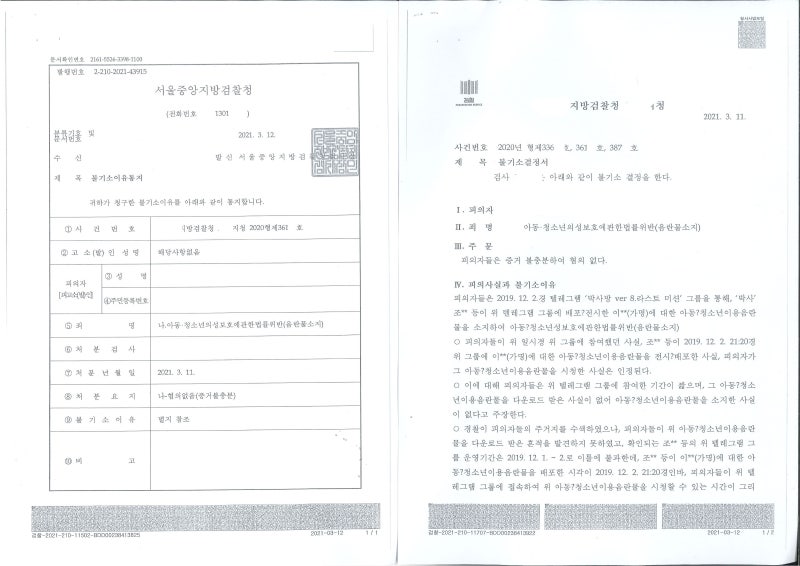 지난주 수요일과 목요일에 아동청소년성보호에관한법률(아청법) 아청물소지죄 피의사실에 대하여 혐의없음 불기소처분을 받은 건이 있어 소개합니다.