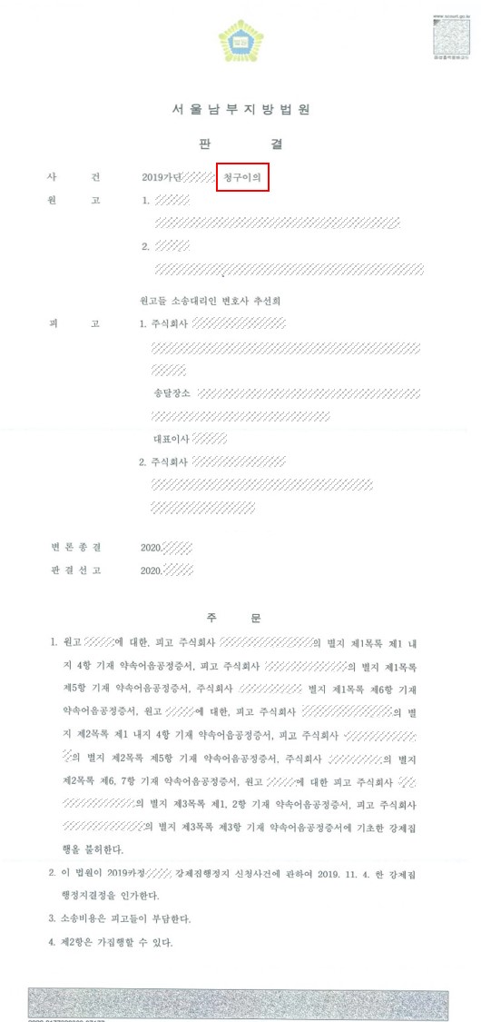 의뢰인들은 본 변호인을 찾아와 청구이의소송을 제기한 사건이었습니다.