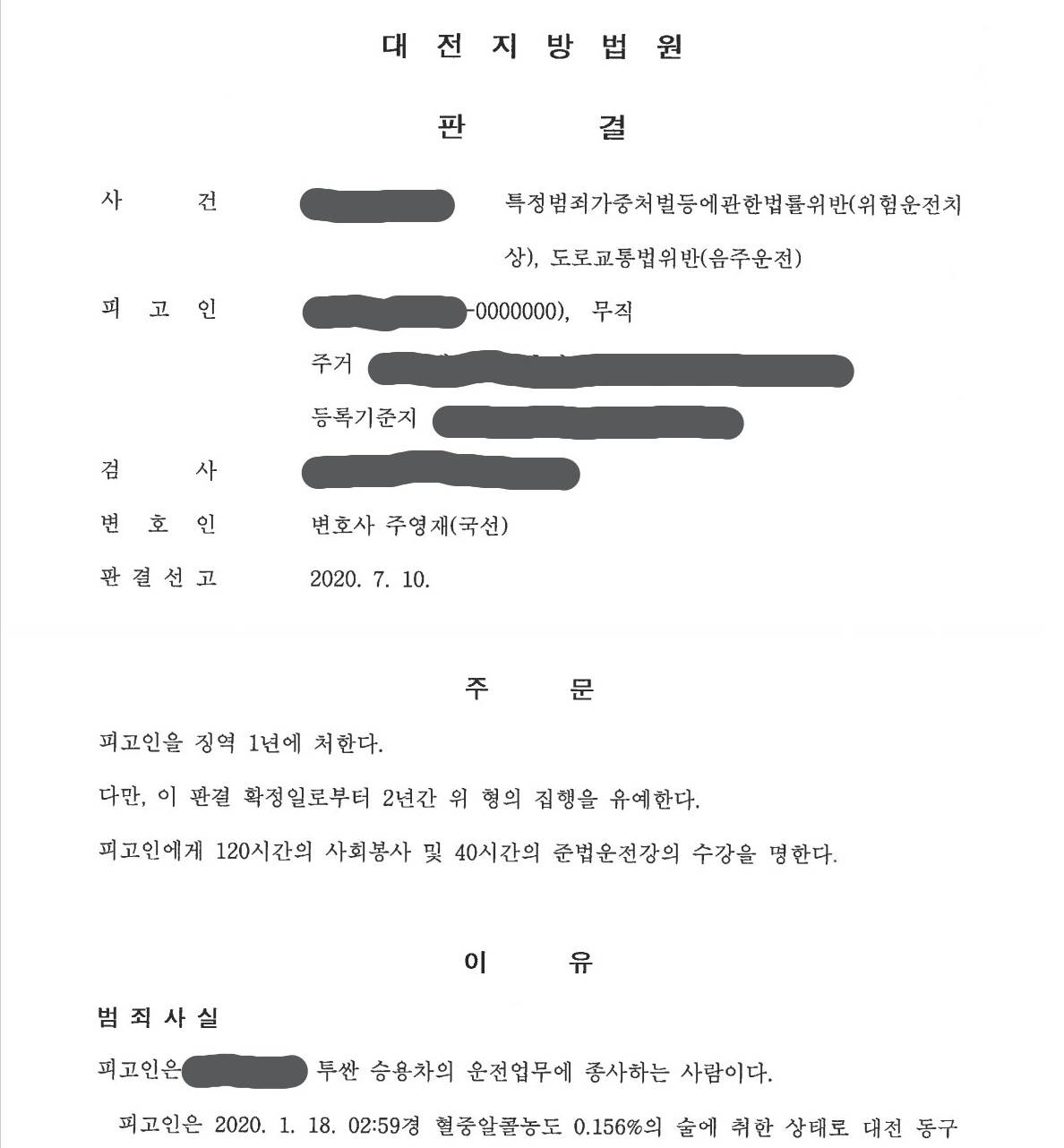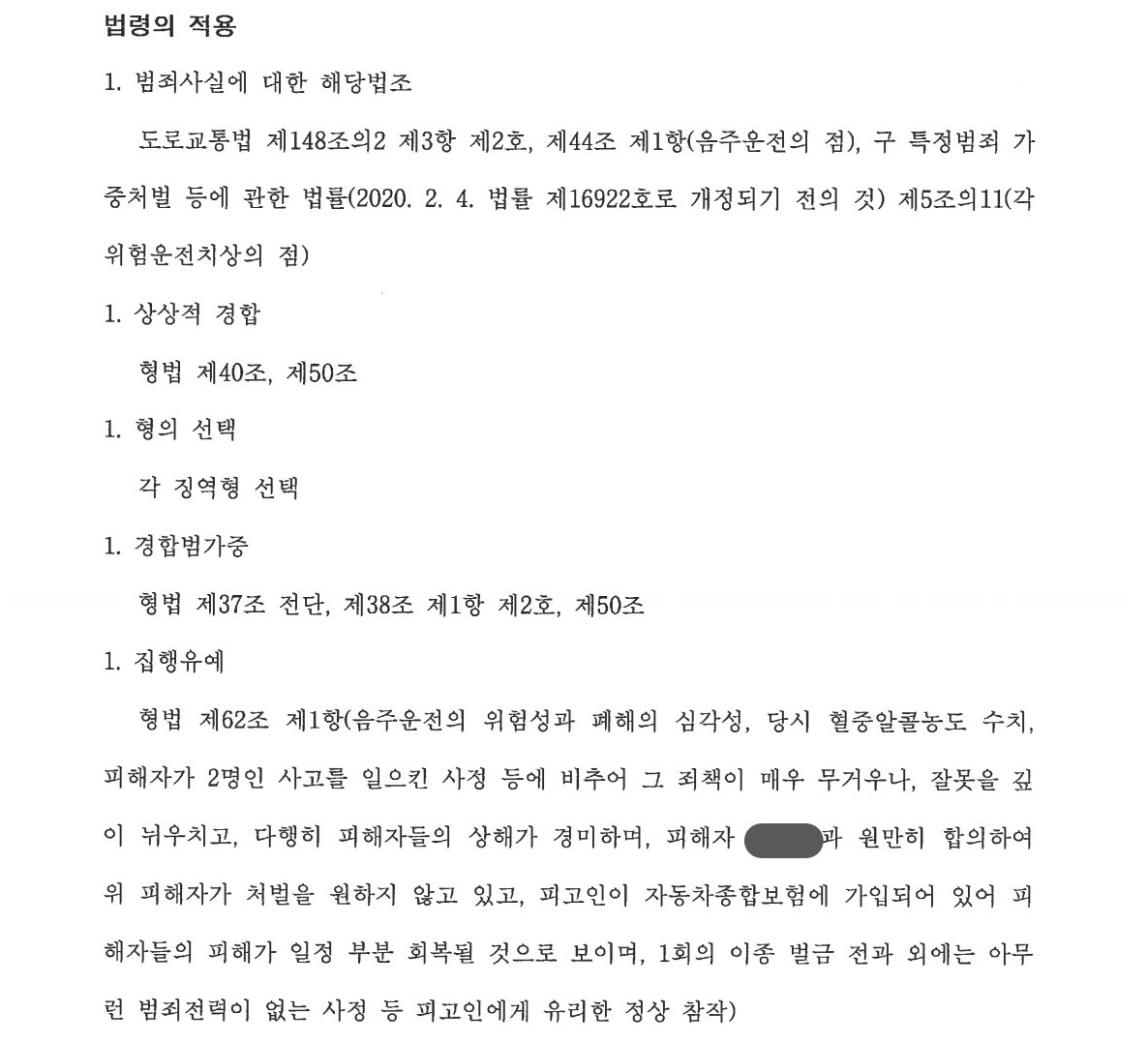 최근 주영재 변호사가 특정범죄가중법위반(위험운전치상)죄 및 도로교통법위반(음주운전)죄 사건에서 집행유예를 이끌어낸 사례가 있어 소개해드리겠습니다.