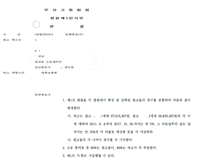 가족과 함께 나들이 나온 폐기저질환 학생이 귀가길 에서 호흡곤란이 와 인근 대학병원으로 옮겼으나 중환자실 치료까지 받게 되었고 중환자실 치료도중 삽관된 기관튜브가 빠진 채로 발견되었습니다. 해당병원 의료진은 학생에 대한 기관관리를 적절히 하지 못하였고, 발관된 튜브에 대한 처치를 적절히 하지 못하여 저산소성 뇌손사에 빠졌고 결국 사망하였습니다.