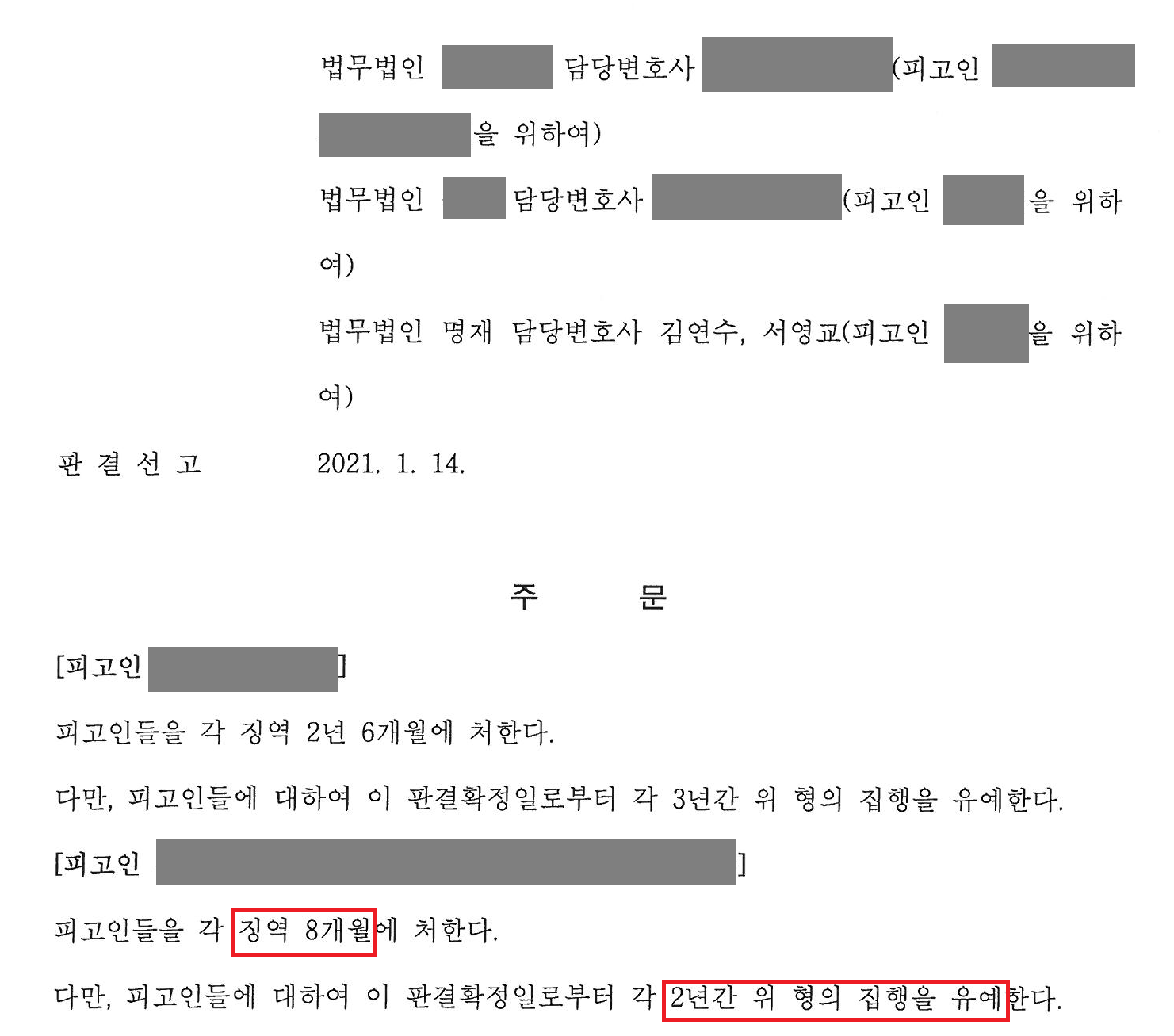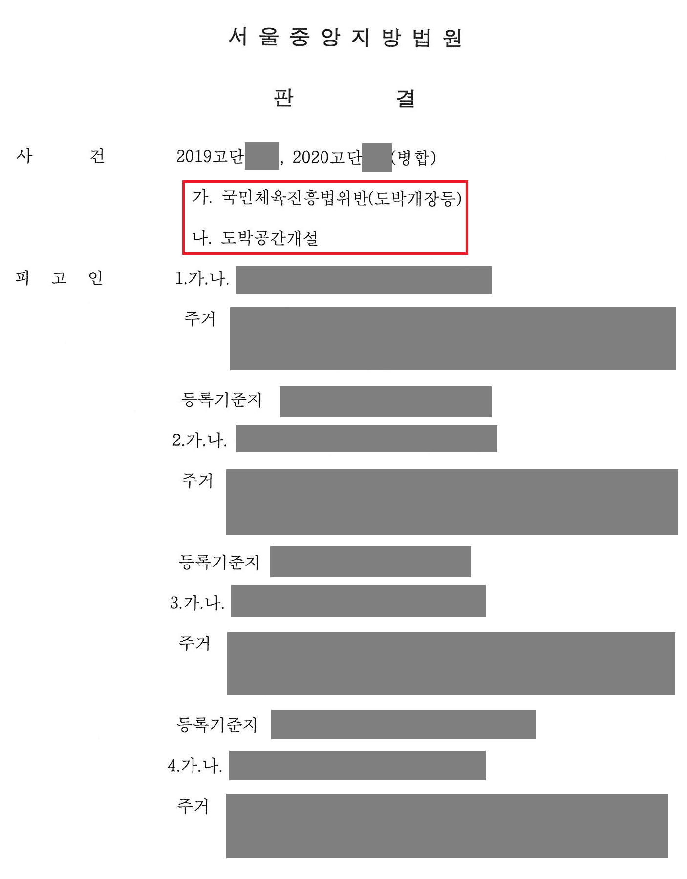법원은 국민체육진흥법 위반(도박개장 등), 도박공간개설죄를 유죄로 인정하면서도 의뢰인에게 징역 8월, 집행유예 2년을 선고하였습니다. 덕분에 의뢰인은 인신구속 없이 가정과 직장에 돌아갈 수 있었습니다.