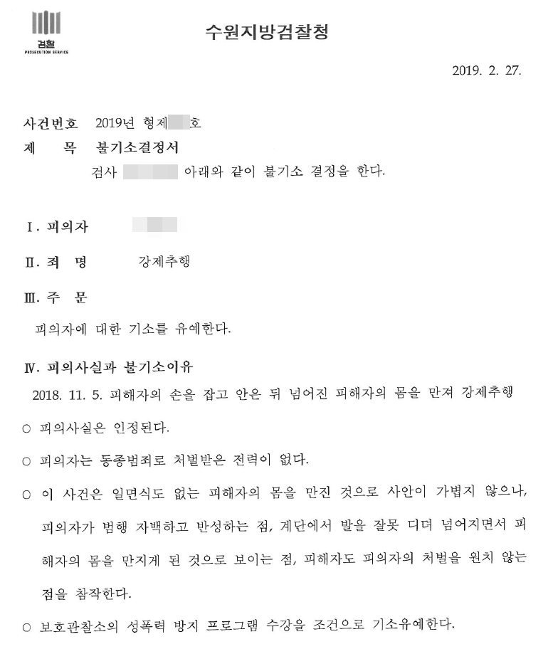 결국 피해자 분의 용서를 받아내고 검로부터 최종 기소유예 처분을 받게 되었습니다.