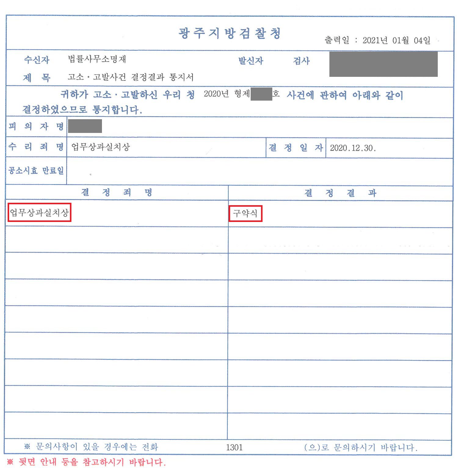 검찰은 업무상과실치상 혐의를 인정하고 담당 의사에게 벌금 300만원의 구약식 처분을 내렸습니다. 병원 측에서는 의료배상공제조합을 통해 약 500만원의 위로금 지급을 제안하였으나, 의뢰인은 이를 받아들이지 않고 의료분쟁조정위원회에 사건을 접수하여 손해배상을 받기 위한 절차를 진행하고 있습니다.