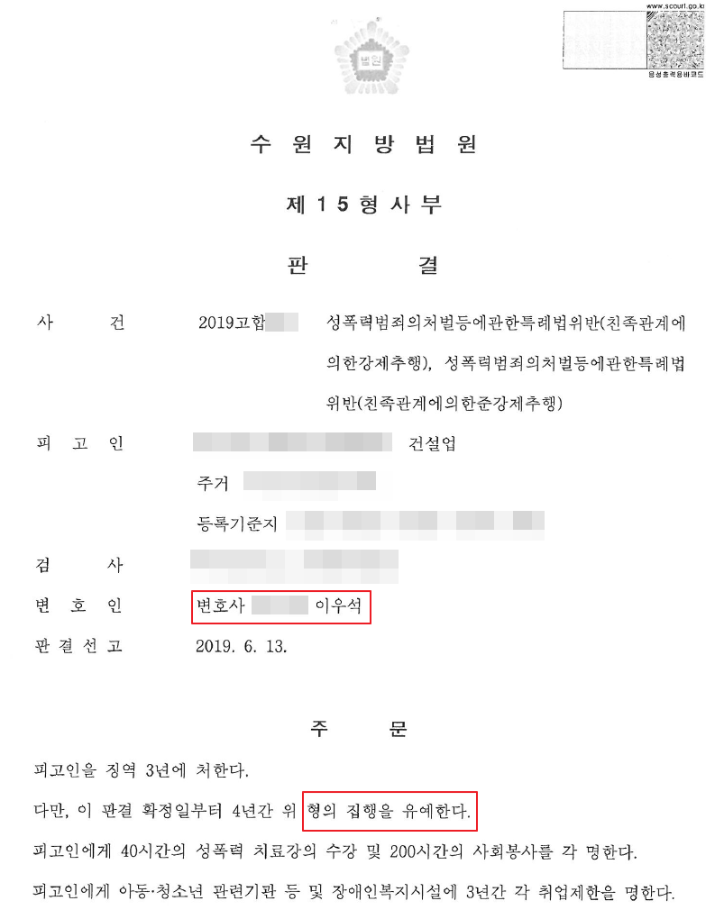 의뢰인은 전국을 돌며 고된 건설현장일을 하는 평범한 50대 남성이었습니다. 그러나 재혼한 와이프와 점점 사이가 멀어지다가 술을 가까이 하게 되었고 만취하여 당시 미성년자였던 의붓딸에게 큰 실수를 저지르게 되었습니다.