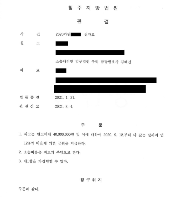 오늘은 청주지방법원 2020가단32*** 위자료 사건에 대해 소개해 드립니다.