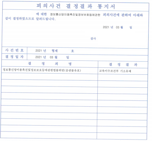 음란물 유포로 의뢰 받은 사건입니다. 사건의 면밀한 검토 결과 음란물 유포만이 아닌 기타 법 위반의 소지가 있었습니다. 진정서 열람을 통하여 아직 수사가 확대되어 진행하지 않았다는 점을 알 수 있었습니다. 사건이 크게 번지기 전 문제되는 사안을 특정하여 혐의를 인정했고 양형 자료를 빠르게 준비 및 제출했습니다. 기소유예라는 좋은 결과를 얻을 수 있었습니다.