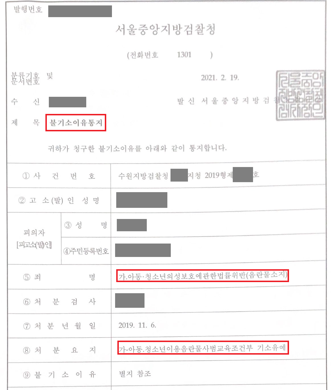 검찰인 저의 변론을 적극적으로 받아들여 아청법 위반(음란물소지) 혐의에 대해 기소유예 처분을 하였습니다. 의뢰인은 5만원을 지급하고 수십 개의 아동·청소년음란물을 다운로드했기 때문에 적게는 벌금형부터 많게는 징역형의 집행유예까지 가능했으나, 기소유예 처분 덕분에 어떠한 전과 기록도 남기지 않고 일상으로 복귀할 수 있었습니다.