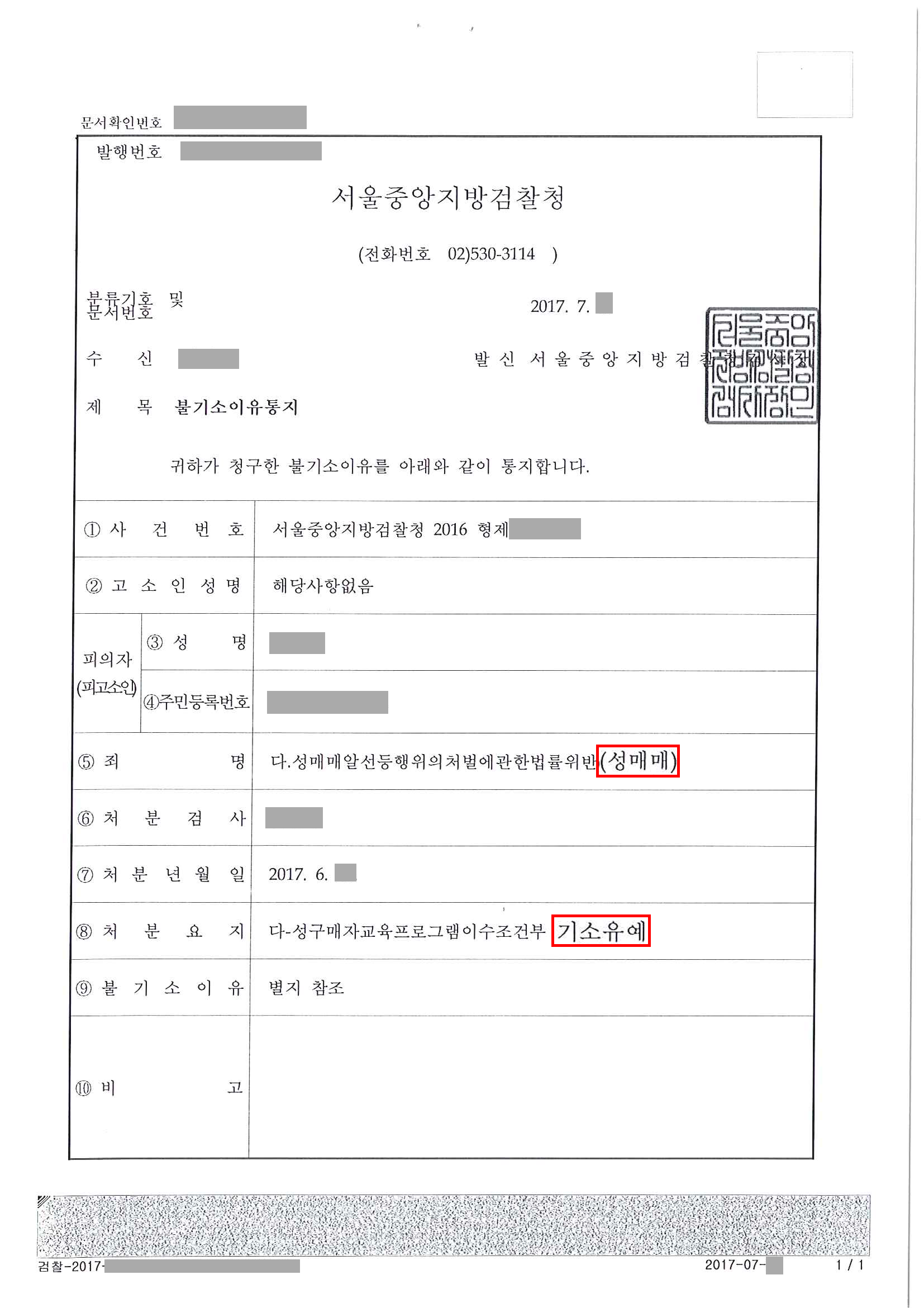 하지만 의뢰인의 주장은 받아들여지지 않았고 검찰에서는 사건을 법원에 송치하겠다는 입장을 밝혔습니다. 그제서야 의뢰인은 부랴부랴 한음에 사건을 의뢰했고 수사기록 열람 신청 및 의뢰인과의 심층 상담을 통해 사건을 분석했습니다. 알고보니 이미 경찰은 의뢰인과 성매매 업소 주인간의 통화내역을 증거로 확보한 상태였고 성매매 당일 CCTV도 확보한 이후였습니다. 만약 혐의 입증이 힘들다고 판단되는 경우 성매매업소 여 종업원도 소환조사할 계획이었습니다. 이는 형사전문변호사가 아니고서는 수사기관에 정식으로 정보를 요청, 분석하기 힘든 사항들이었습니다. 이에 이미 경찰측에서 5회 가량의 성매매 예약 통화내역을 확보한 이상 1회 혐의만 인정하고 기소유예 처분을 구하는 것이 낫다는 조언을 하였습니다. 이에 검찰은 의뢰인이 과거에는 전과가 없고 우울증 등으로 극심한 스트레스를 겪고 있었다는 점을 감안하여 교성구매자교육프로그램 이수조건부 기소유예 처분을 내렸습니다.