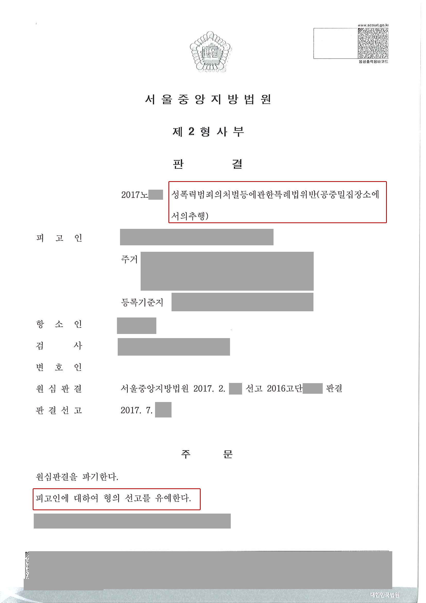 그렇다고 무조건 피해자측 진술을 인정하고 용서를 구한다고 하여 기소유예 처분이 100% 나온다는 장담도 할 수 없을뿐더러 사건현장이 촬영된 영상이 있지 않는한 법원으로서도 피해자 진술의 신빙성만 검토하기 때문에 유죄판결 및 신상정보등록 처분이 나오기 매우 쉬운 것이 공중밀집장소추행죄입니다.