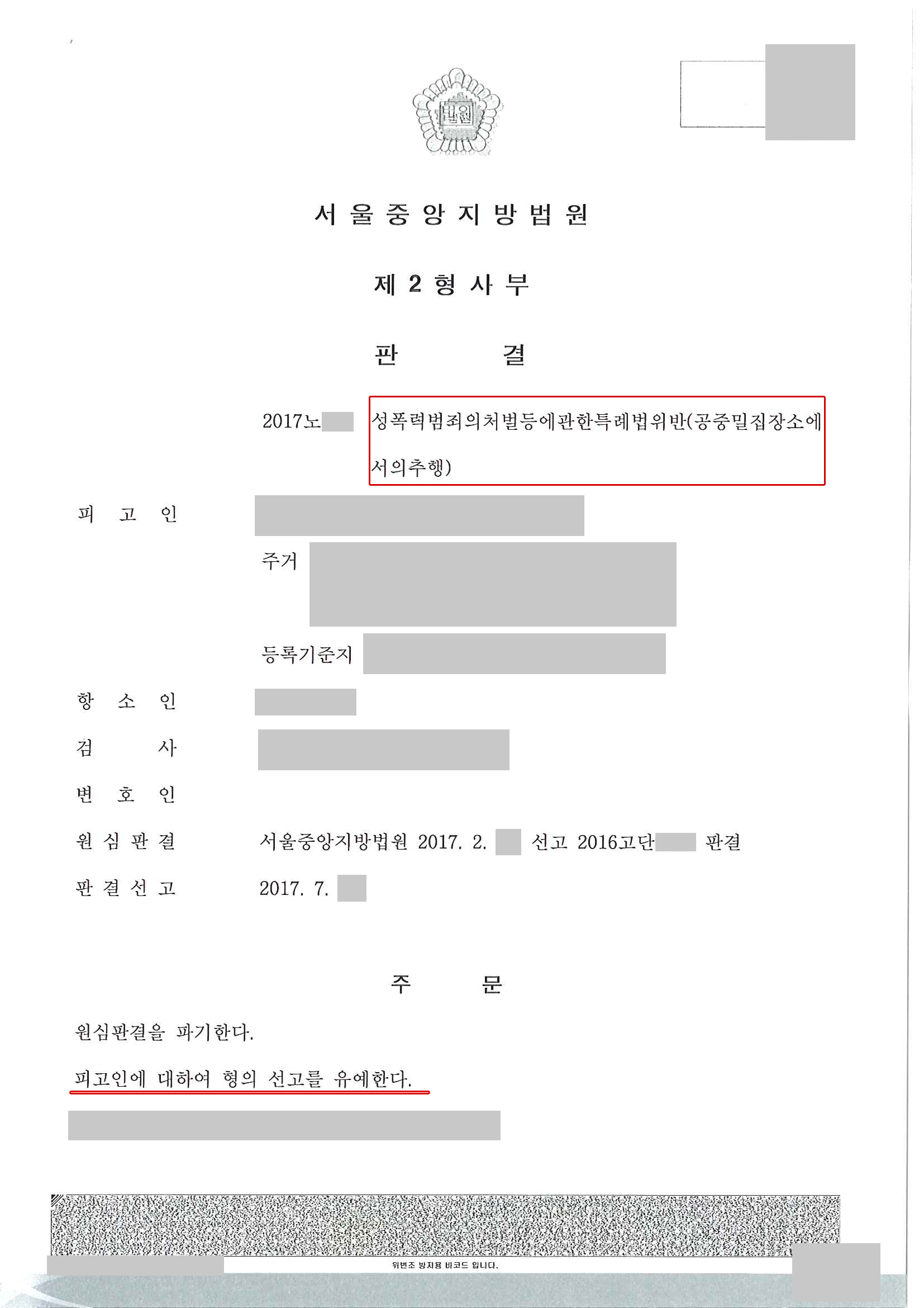 이에 법원은 의뢰인의 죄질이 다소 불량하나 더 이상 피해자측에서 처벌을 원하지 않고 재범의 위험성도 낮은 것으로 보이는바 선고유예 판결을 내렸습니다.