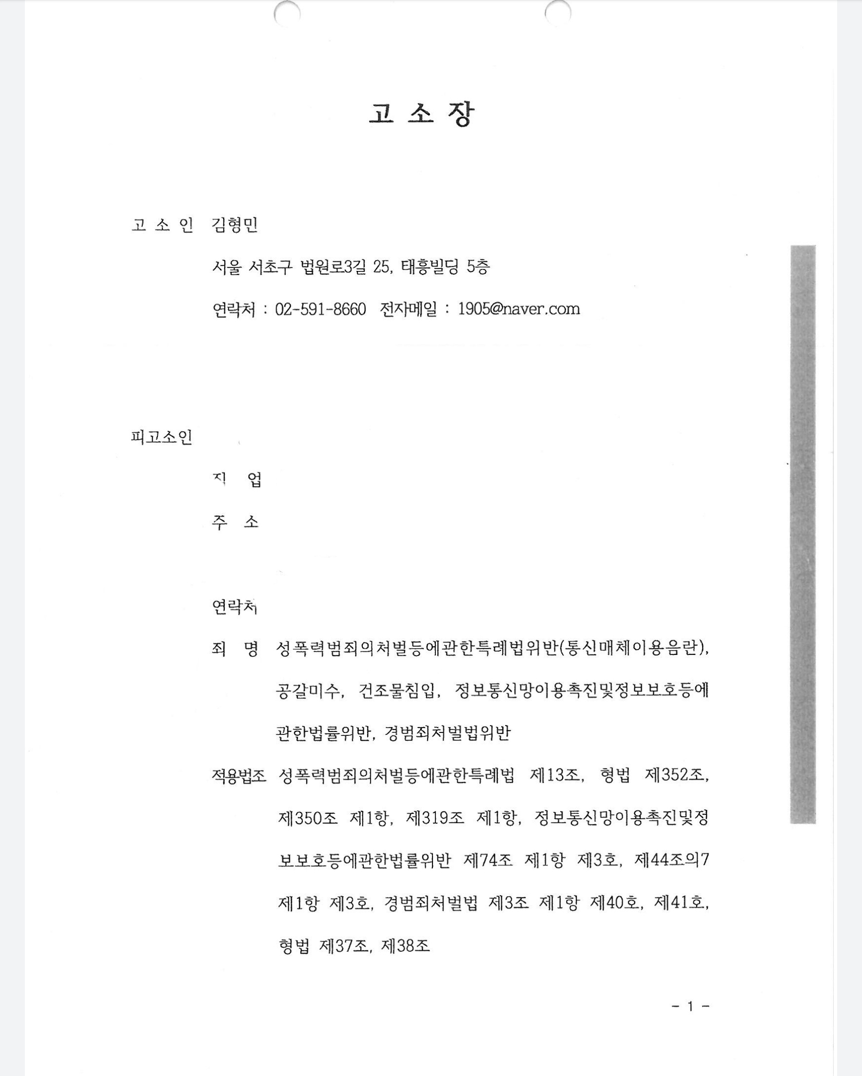 과거 및 진행 중인 스토킹 행위에 대한 형사고소
