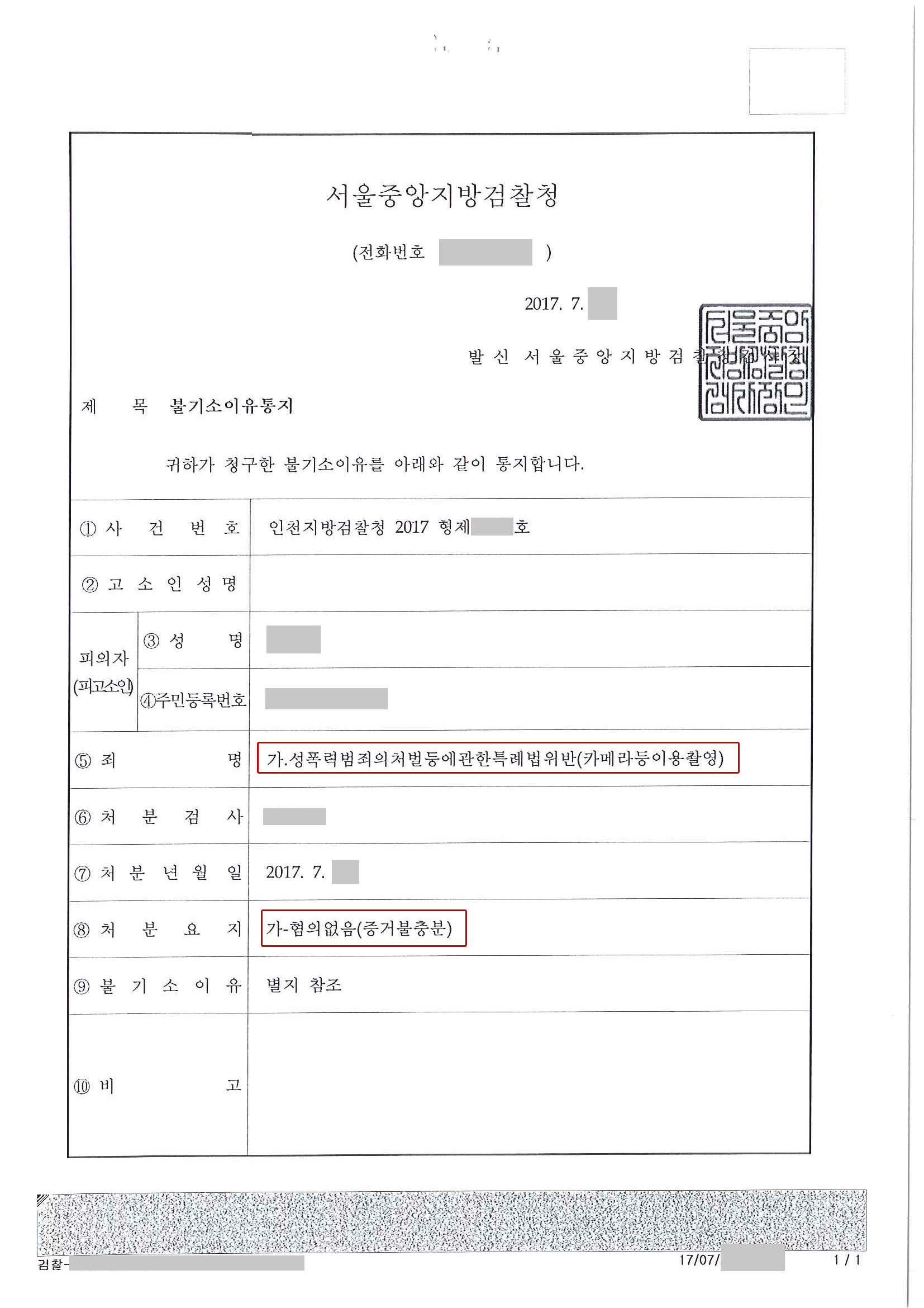이에 검찰은 의뢰인에게 카메라등이용촬영죄의 혐의가 인정되지 않는다고 결정하였습니다.