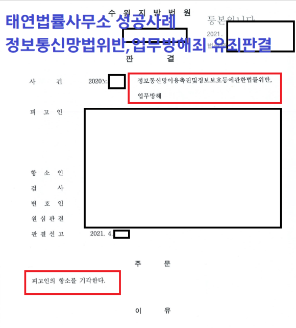 죄명은 정보통신망법위반 과 업무방해죄로 최종 결정되었는데요