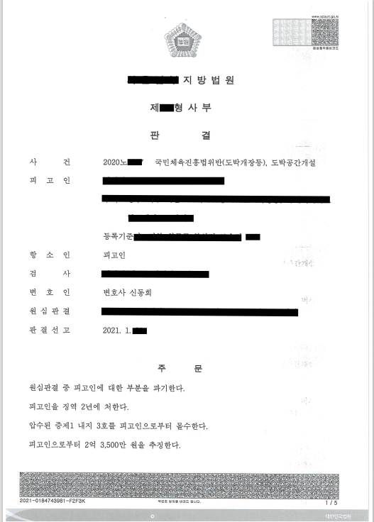 피고인은 해외에 사무실을 둔 사설토토사이트를 운영한 혐의로 구속재판을 받고 있었습니다.