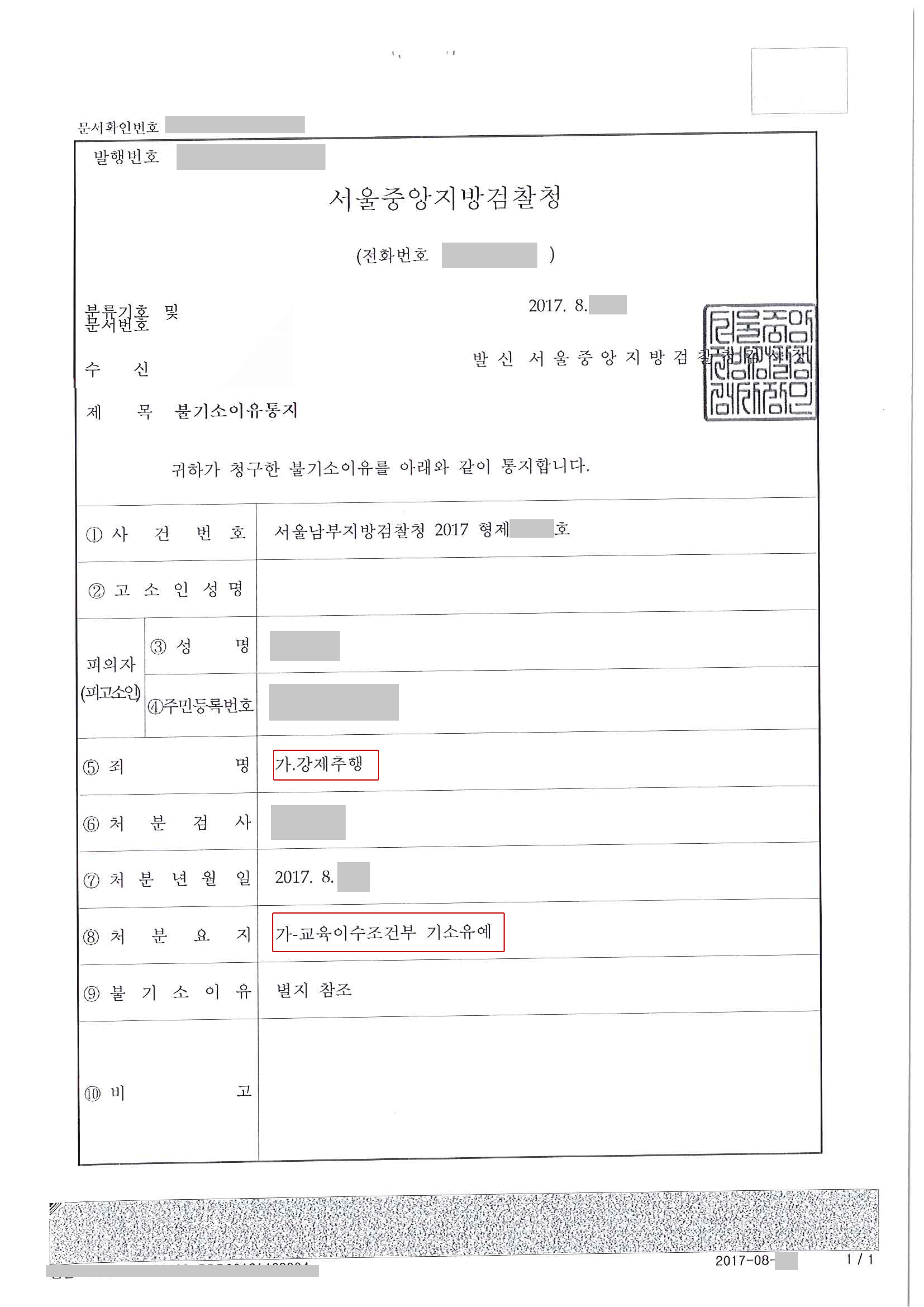 비록 피해자와의 합의는 이루어지지 않았지만 전과가 없는 점 등이 반영되어 의뢰인은 교육이수조건부 기소유예 처분으로 사건을 종결시킬 수 있었습니다.