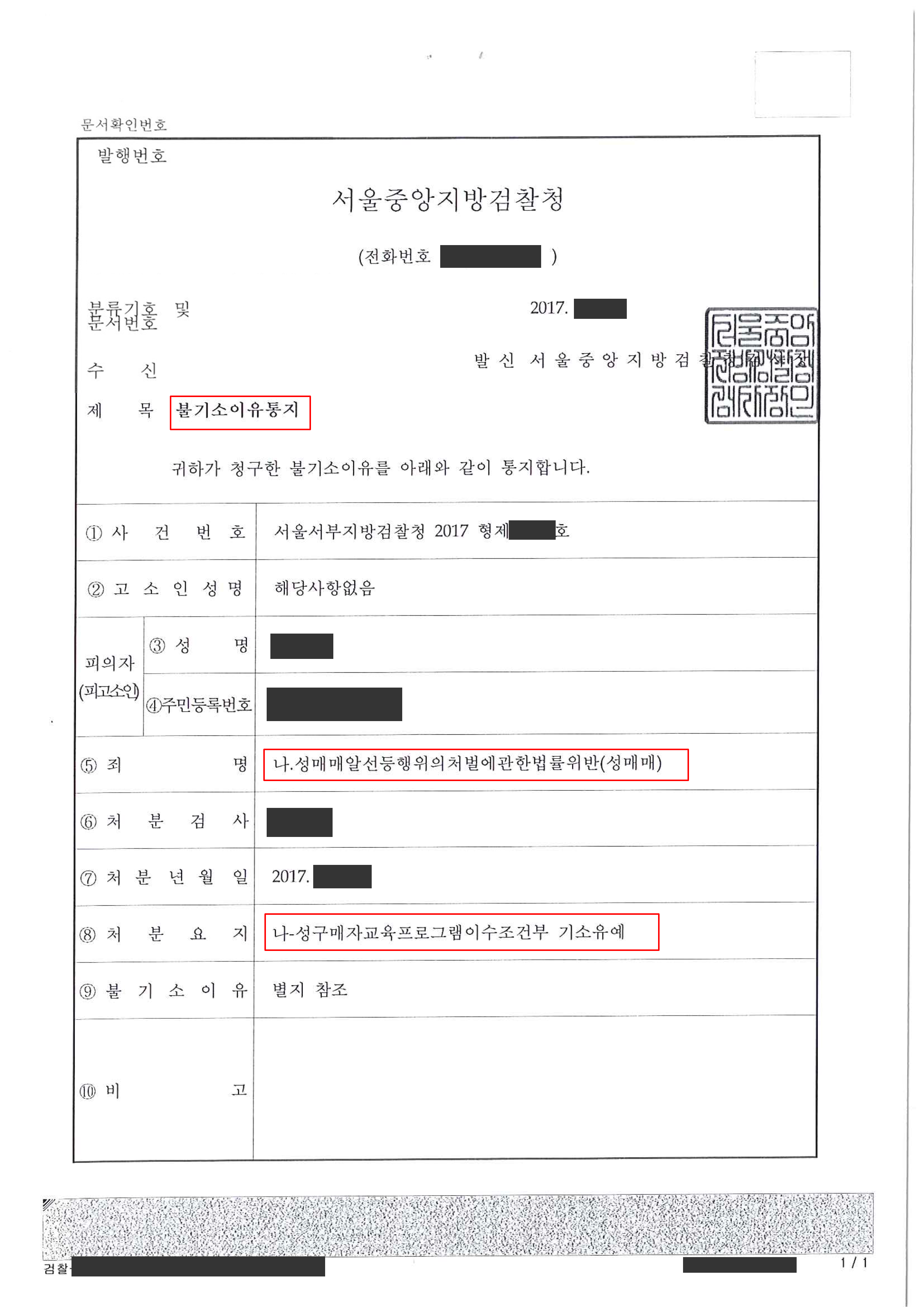 이에 검찰은 의뢰인이 처음에는 혐의를 부인하였지만 이후 죄를 뉘우치는 정황이 크고 1회성 초범이라는 이유로 성매수자교육이수조건부 기소유예 처분을 내렸습니다.