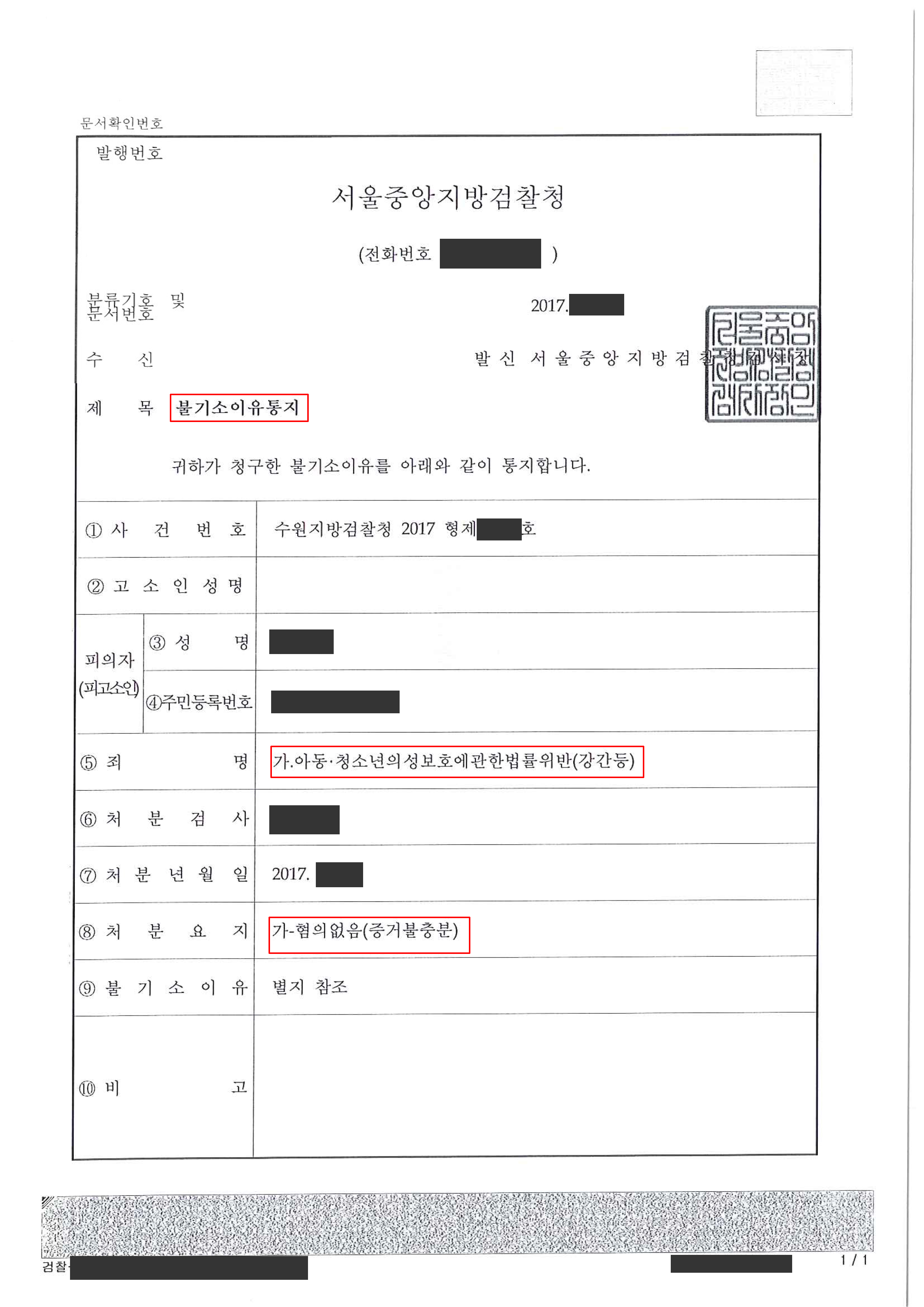의뢰인과 C양이 그간 주고받았던 통화내역과 카톡메세지 등을 최대한 수집하였습니다. 이를 통해 의뢰인과 C양은 일회적 만남이 아니라 지속적인 만남을 가지고 있던 연인관계임을 증명하였습니다. 또한 우리나라 판례상 13세 이상의 경우 성관계에 대한 자유로운 자기결정권이 있는 것으로 보는 점 등을 제시하며 사건당시 만18세였던 C양은 충분한 성적 자기결정을 할 수 있는 의사능력이 있다고 주장하였습니다. 특히 사건 이후에도 자기, 여보 라는 애정표현을 계속적으로 주고받은 점을 감안하면 합의에 의한 성관계였음을 인정할 수 있다고 주장하였습니다. 이에 검찰은 의뢰인이 아동청소년 강간을 했다는 증거가 없다는 이유로 혐의없음 처분을 내렸습니다.