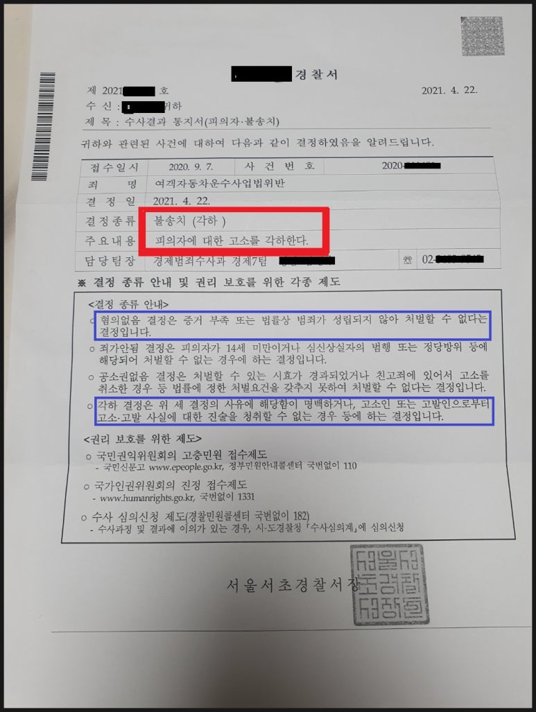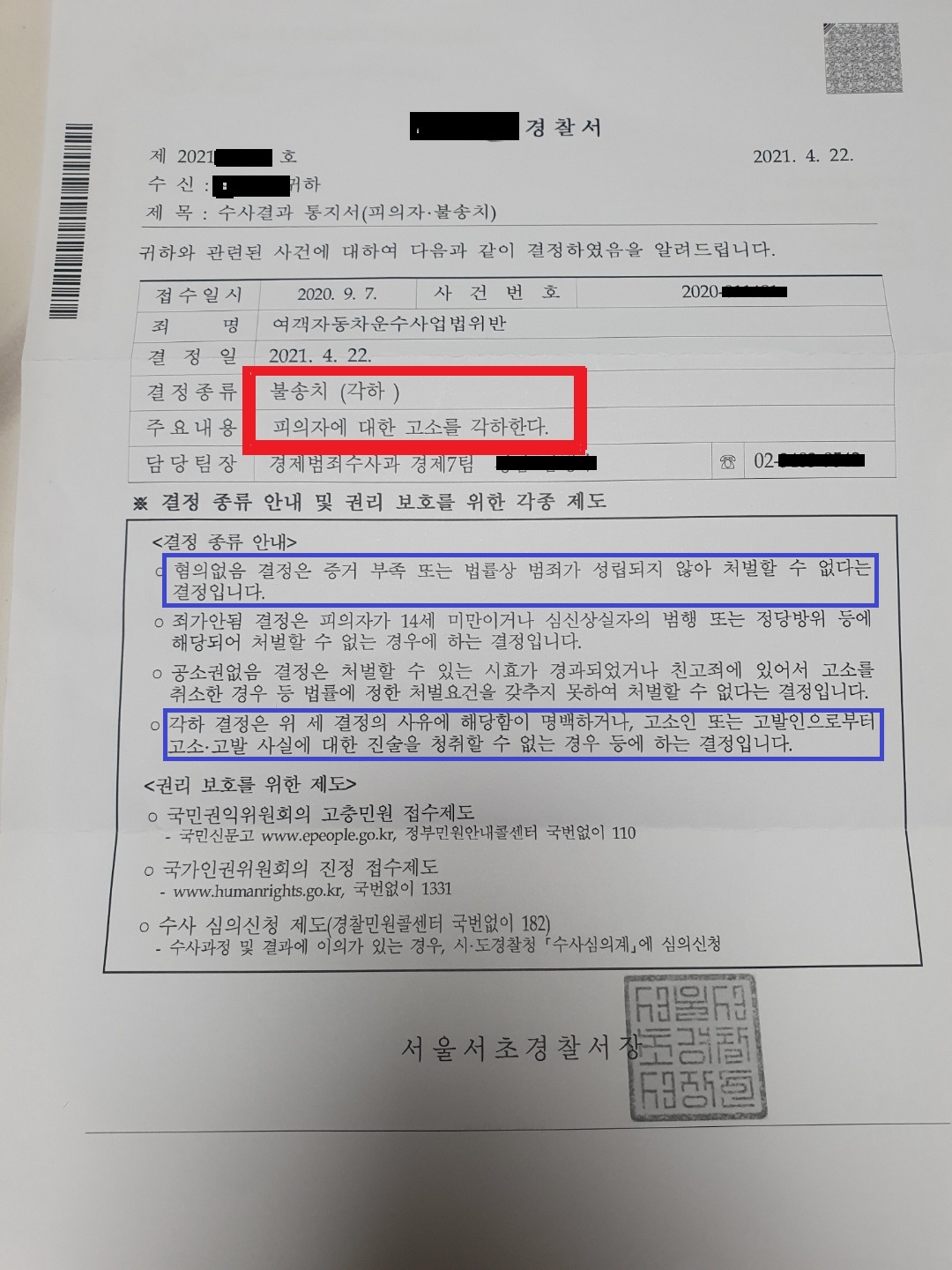 사실이 이러함에도 고소인은 피고소인(의뢰인)을 사기 및 사문서위조, 위조사문서행사 혐의로 고소하였던 것이지만, 결국 저희 부유법률사무소 피고소인 의뢰인은 경찰 단계에서 경찰단계 혐의없음 불송치 각하 불송치 처분을 받을 수 있었습니다.