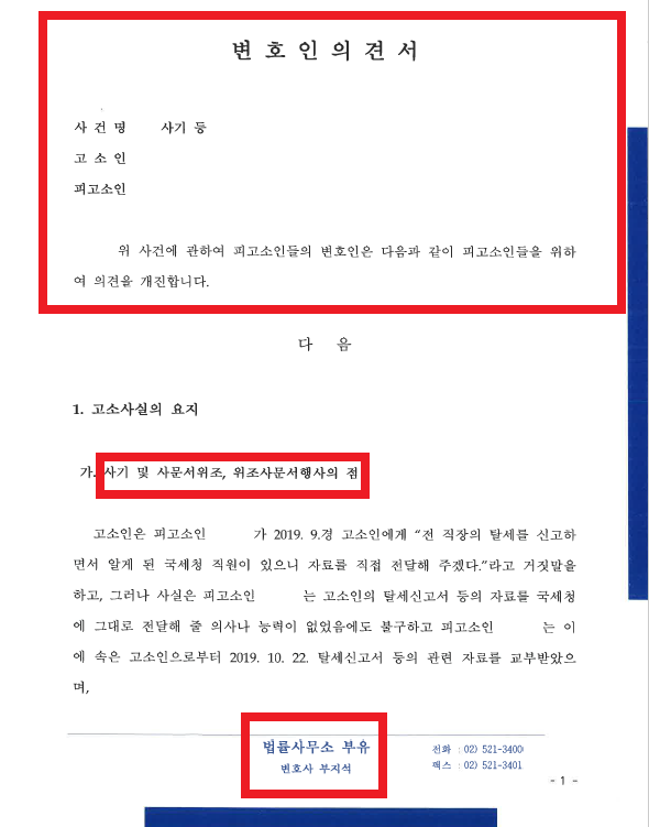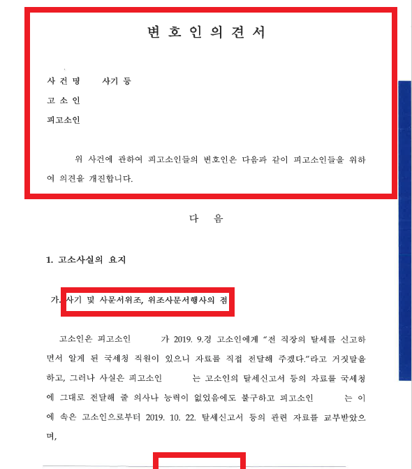 고소인의 주장에 따르면 피고소인이 고소인에게 전 직장의 탈세를 신고하면서 알게 된 국세청 직원이 있으니 자료를 직접 전달해주겠다고 거짓말을 하였고, 고소인의 탈세신고서 등 관련 자료를 국세청에 그대로 전달해 줄 의사나 능력이 없었음에도 이를 교부받은 뒤 피고소인 명의로 변경하는 방법으로 탈세신고서를 위조하여 탈세신고서를 접수하면서 그 사실을 모르는 성명을 알 수 없는 국세청 공무원에게 마치 진정하게 성립한 것처럼 일괄 제출하여행사하여, 이로써 피고소인이 고소인을 기망하여 고소인의 포상금을 편취하는 방법으로 재물을 교부받았고 주장하면서 형사 고소를 하였던 것입니다.