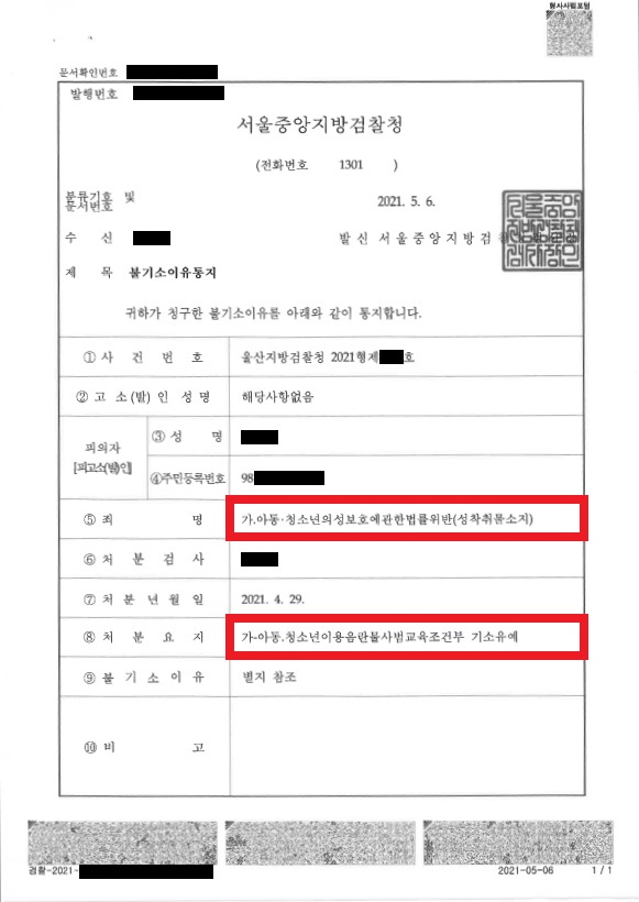 이러한 저의 조력을 바탕으로 A씨는 'N번방 사건' 이후 성착취물소지 사건에서 '기소유예' 처분은 사실상 불가능해졌음에도 불구하고 '아동·청소년이용음란물사범교육조건부 기소유예' 처분을 받음으로써 성범죄 전과자가 될 위기에서 벗어날 수 있었습니다.