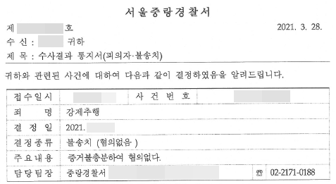 그 결과 경찰단계에서 혐의없음 불송치 결정을 받게 되었습니다.