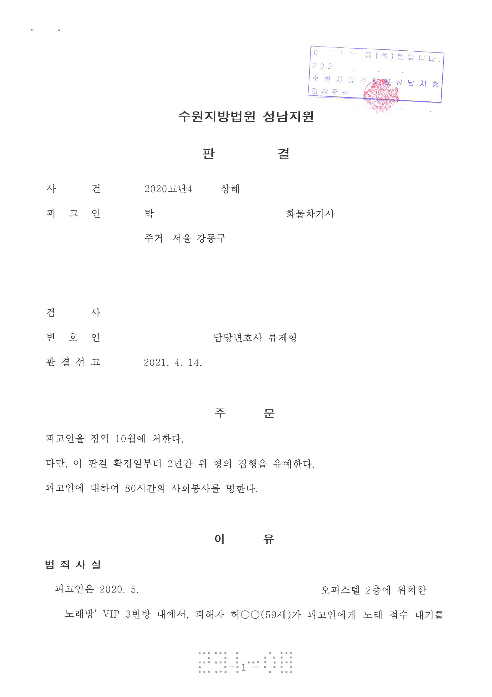 <수원지방법원 성남지원 2020고단4*** 상해>