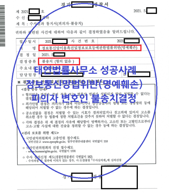 오늘 소개해드릴 사안은 카페명예훼손죄 사안으로 고소를 당했지만 태연법률사무소와 함께 진행하여 좋은 결과를 얻은 사례입니다!