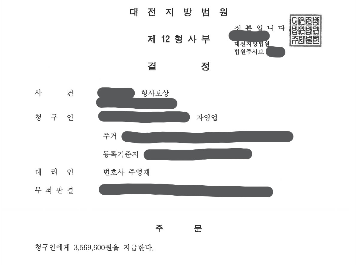 최근 주영재 변호사가 형사비용보상을 청구해 상당한 보상금을 받은 사례가 있어 소개해드리겠습니다.