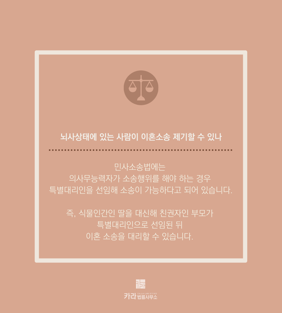 즉, 식물인간인 딸을 대신해 친권자인 부모가 특별대리인으로 선임된 뒤 이혼 소송을 대리할 수 있다는 말입니다.