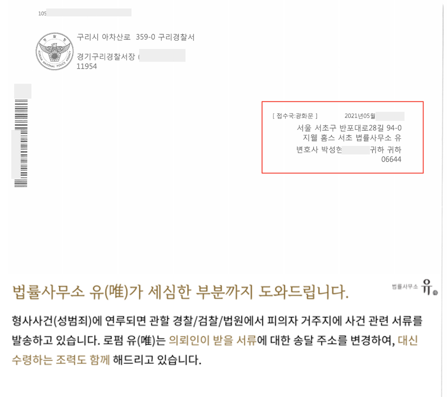 ![[2021.05 경기구리경찰서] 강제추행 무혐의](/_next/image?url=https%3A%2F%2Fd2ai3ajp99ywjy.cloudfront.net%2Fuploads%2Ftitleimage%2Foriginal%2F5c2353a4227b15a91df810e1-original.jpg&w=3840&q=75)