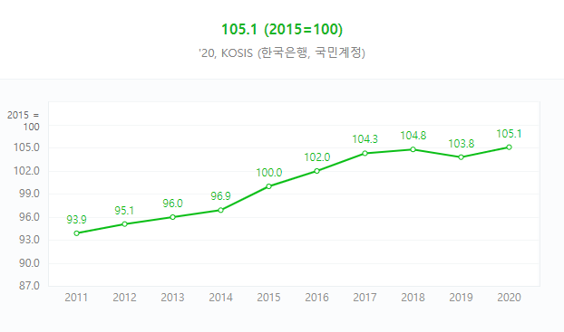 2015년에는 해당 지표가 100 / 2020년에는 105.1입니다.