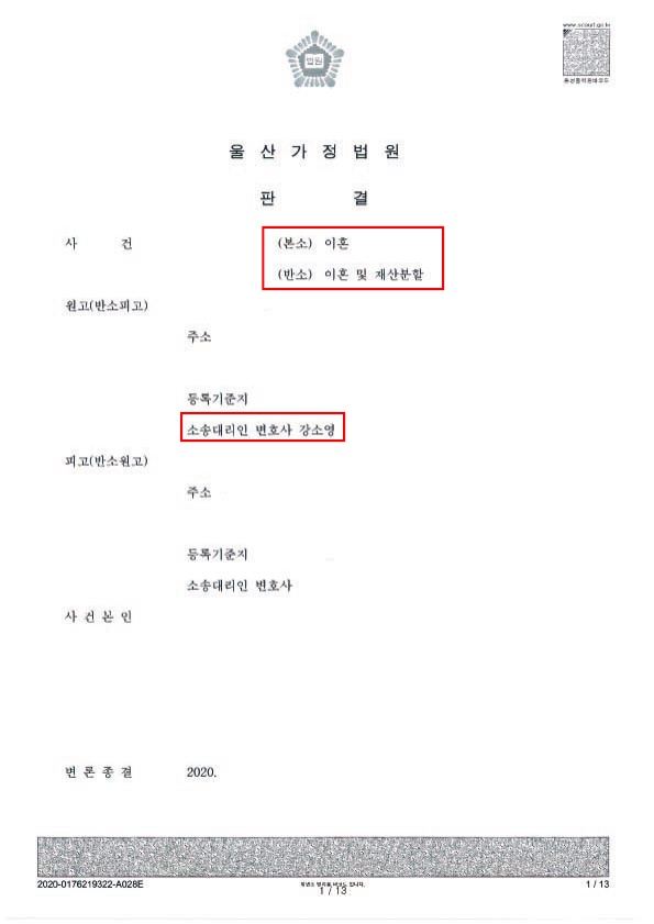 법원에서는 의뢰인과 상대방이 협의한 대로 조정조서를 작성해주셨는바 저희 의뢰인은 신속하게 조정조서를 얻어 이혼에 성공할 수 있었습니다.
