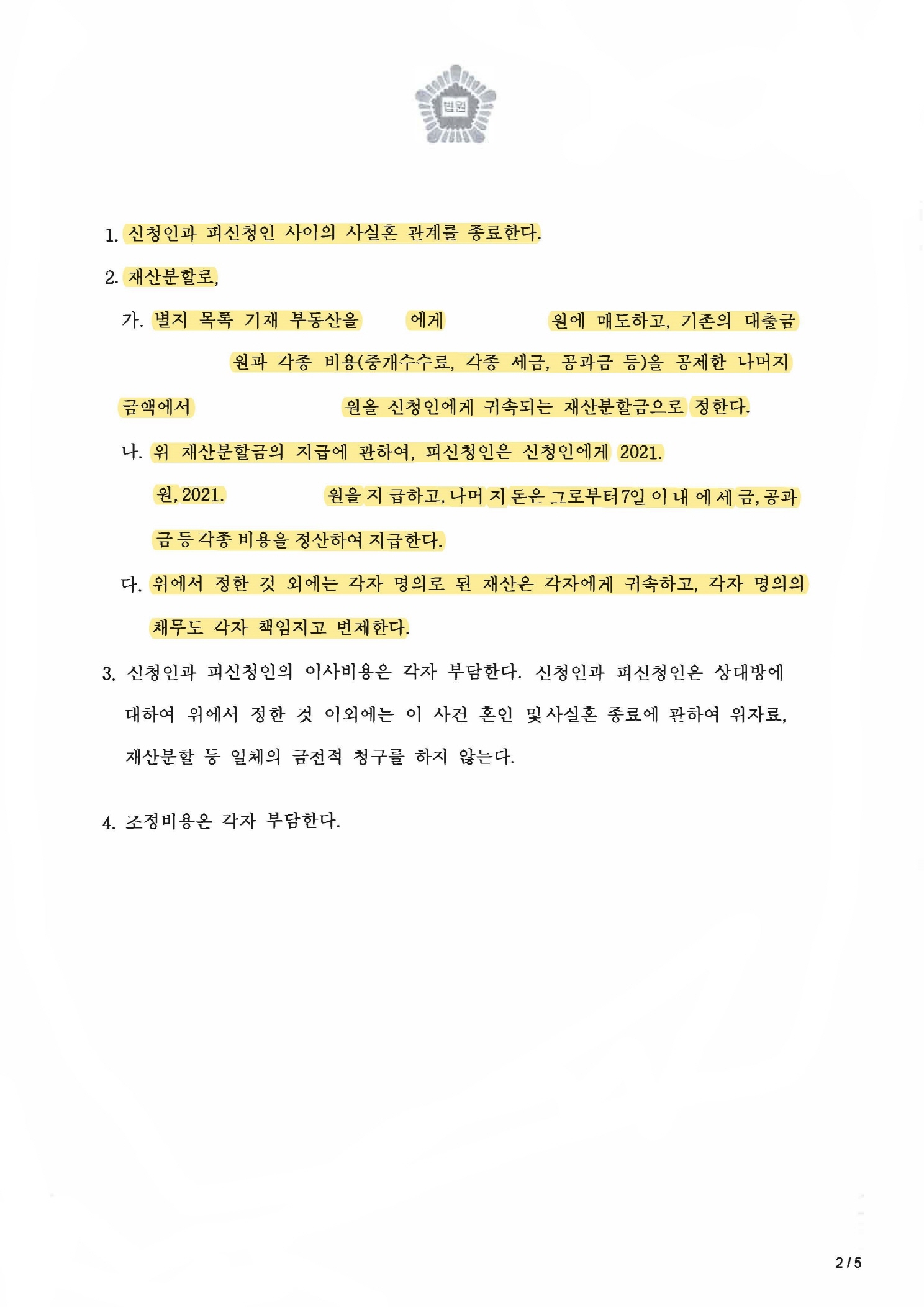 비록 유리한 상황은 아니었으나 조정기일에 조정위원과 판사님을 설득하는 데 주력하였고, 결국 원만하게 합의가 성립되어 부동산을 매도하고, 담보대출금과 비용을 공제한 금액에서 재산분할 기여도로 40% 이상 인정되어 성공적으로 마무리가 된 사안입니다.