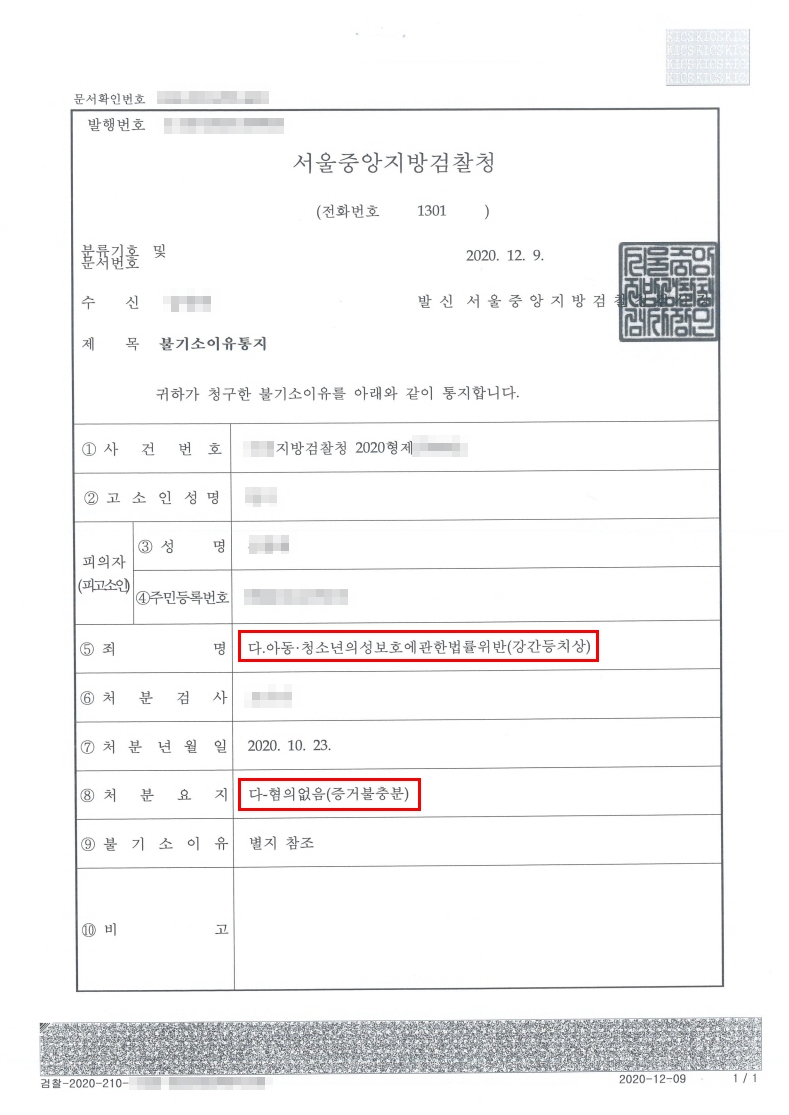 - 경찰조사 2회, 검찰조사 1회 이후 혐의없음(증거불충분) 처분 확보