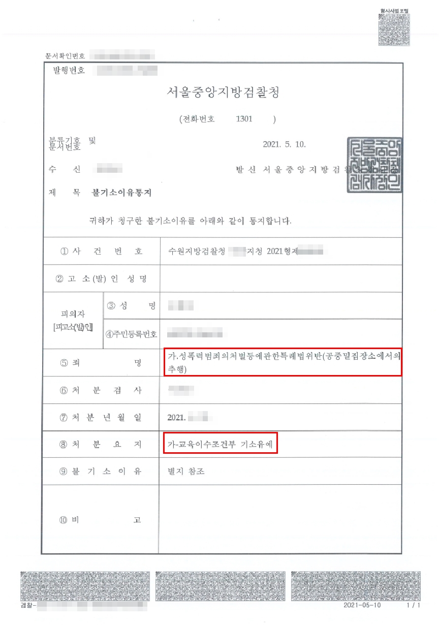 - 기소유예(교육이수조건부) 처분
