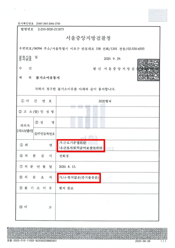 5. 그 결과 노동청에서도 무혐의 의견으로 검찰에 송치되었고, 최종적으로 검찰에서도 혐의 없음 불기소 처분을 받을 수 있었습니다. 자칫하면 대학교 운영에 막대한 지장이 생길 수 있는 노동/형사 사건에서 대학 총장을 변호하여 무혐의 처분을 이끌어 낸 성공사례입니다. 강문혁 변호사는 전국에 9명 밖에 없는(2021. 1. 기준) 대한변호사협회 등록 형사법/노동법 전문변호사로서 중요 노동/형사 사건에서 다수의 성공사례를 보유하고 있는 변호사입니다.