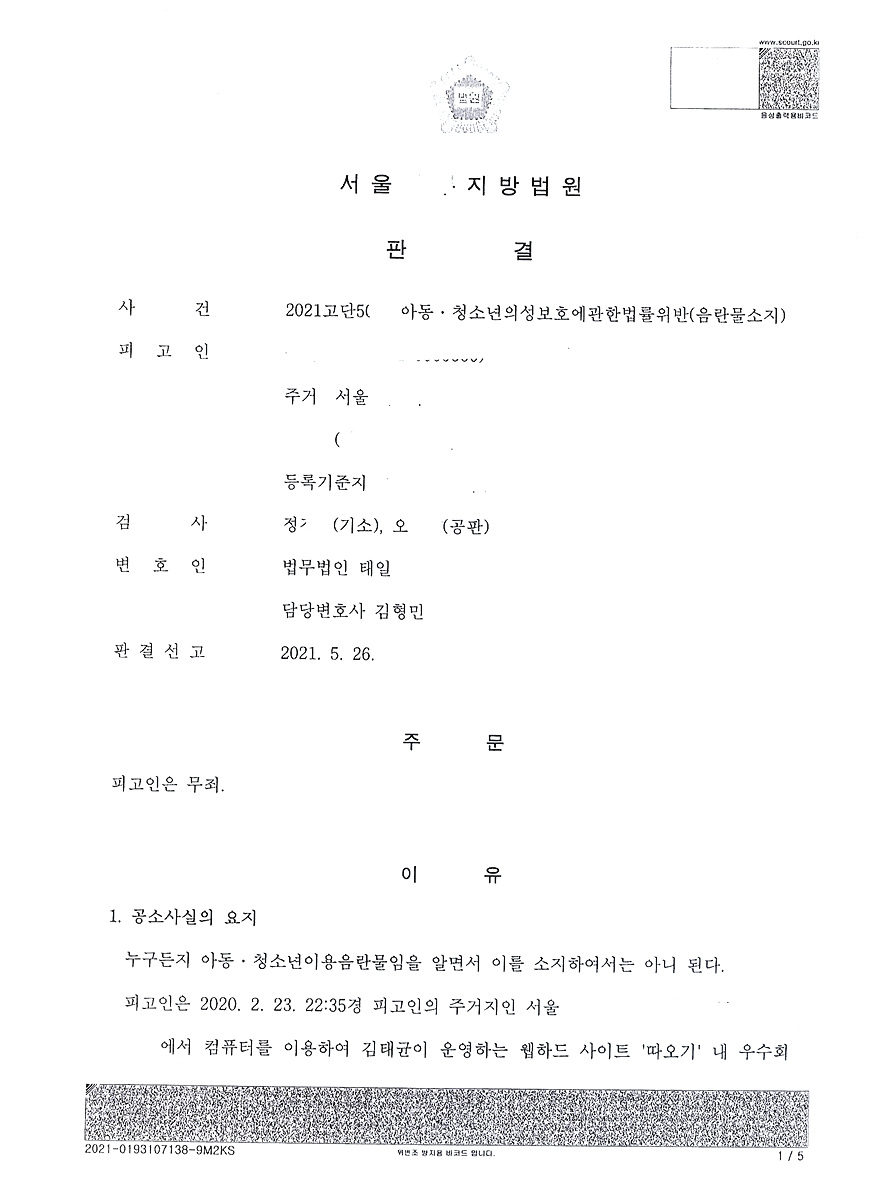 또한 따오기 내 돈쥬앙 사건에서 유일하게 혐의없음 불기소처분을 받은 불기소이유서에서도 20. 3.경 박사 조주빈이 검거되었을 때 언론에 대대적으로 보도되었다는 내용 및 게시글에 올라온 사진이 성인이라는 점이 나타나 있습니다. 이 의견은 변호사의 의견이 아닌 검사님의 의견이므로 판사님 입장에서는 매우 신빙성 있게 받아들여질 수 있습니다. 이 불기소이유서는 대중에게 공개된 것이 아니어서 실제 변호한 변호사만이 가지고 있을 수밖에 없어 불기소처분을 받은 경험이 없는 변호사의 경우 당연히 이러한 자료를 증거로 제출하는 것이 불가능합니다.