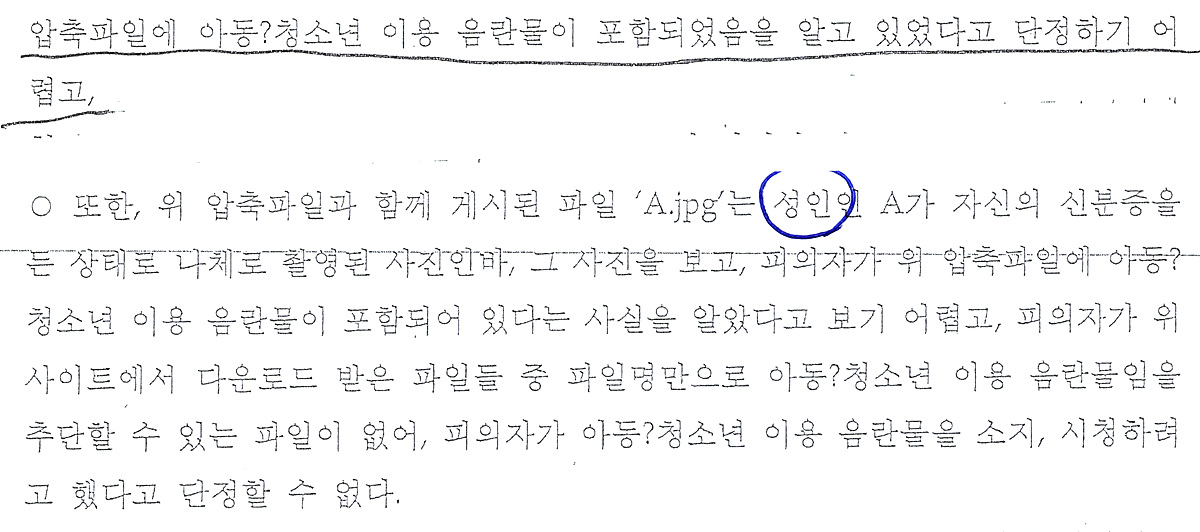 불기소이유서에서도 성인이라도 나와 있음에도 일부 공판검사님의 경우 사진까지 게시되어 있어 아동청소년이용음란물임을 모를 수가 없다는 피고인신문을 하고 변호하는 변호사는 이에 대해 아무런 반박을 하지 못한 경우가 있었습니다. 이러한 경우 판사님은 당연히 아동청소년 사진이 게시물에 게시되었다고 생각할 것입니다.