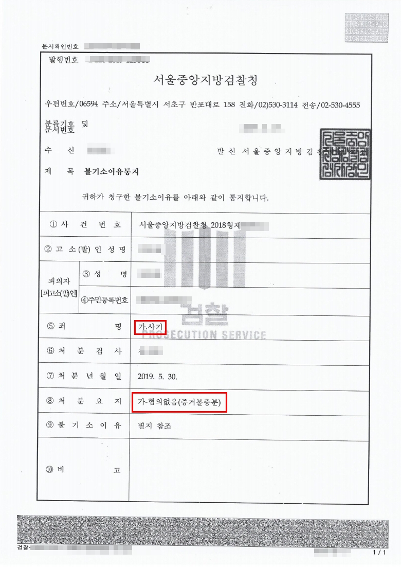 - 혐의없음(증거불충분) 처분 확보