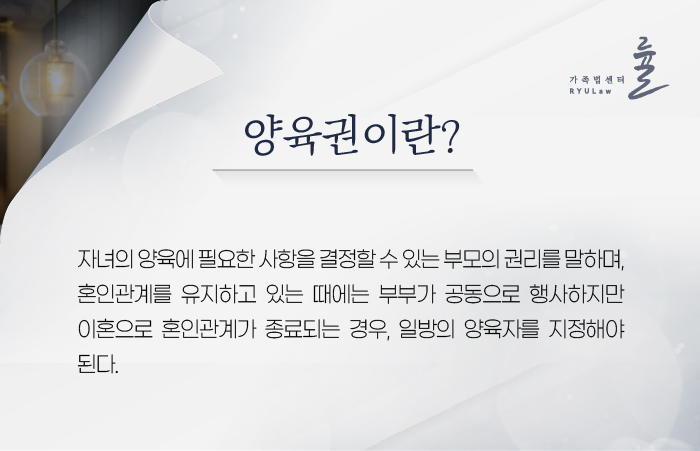 배우자와 갈라서고 싶으나 어린 자녀가 있는 부부 중 상당수가 '자녀가 걱정되어 이혼을 못한다'라고 말합니다. 홀로 자녀를 키우기 위한 환경이 갖추어지지 않았거나, 아이가 마음의 상처를 받을까 봐 쉽게 결심을 못하는 것이죠. 그러나 웃음이 없는 가정에서 불행하게 자라나는 자식을 보며 '이건 아이에게도 좋지 못하다'라고 생각하게 되고, 아이를 위해서라도 이혼을 결정하게 됩니다. 이때 엄마든 아빠든 자녀와 함께 살고 싶기에 원만한 타협점을 찾지 못하여 양육권 소송까지 가게 되는 경우가 많은데, 일반적으로 이 과정은 결코 쉽지 않으므로 해당 소송에 대한 경험이 많은 변호사의 도움이 필수라고 할 수 있습니다.