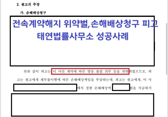 오늘은 전속계약 위약벌 손해배상청구소송에서 승소한 사례를 소개해드리려고 하는데요, 전속계약이 아니더라도, 위약벌이나 손해배상청구소송이 제기되는 경우는 많은데요. 이 사건도 먼저 상대방이 전속계약 체결이 파기된 것에 대한 책임을 물으면서 저희 사무실 의뢰인에게 위약벌 손해배상청구소송을 진행한 사례로 저희쪽에서는 소송피고로 대응하였는데요. 구체적인 내용은 아래에서 상세 안내하도록 하겠습니다.