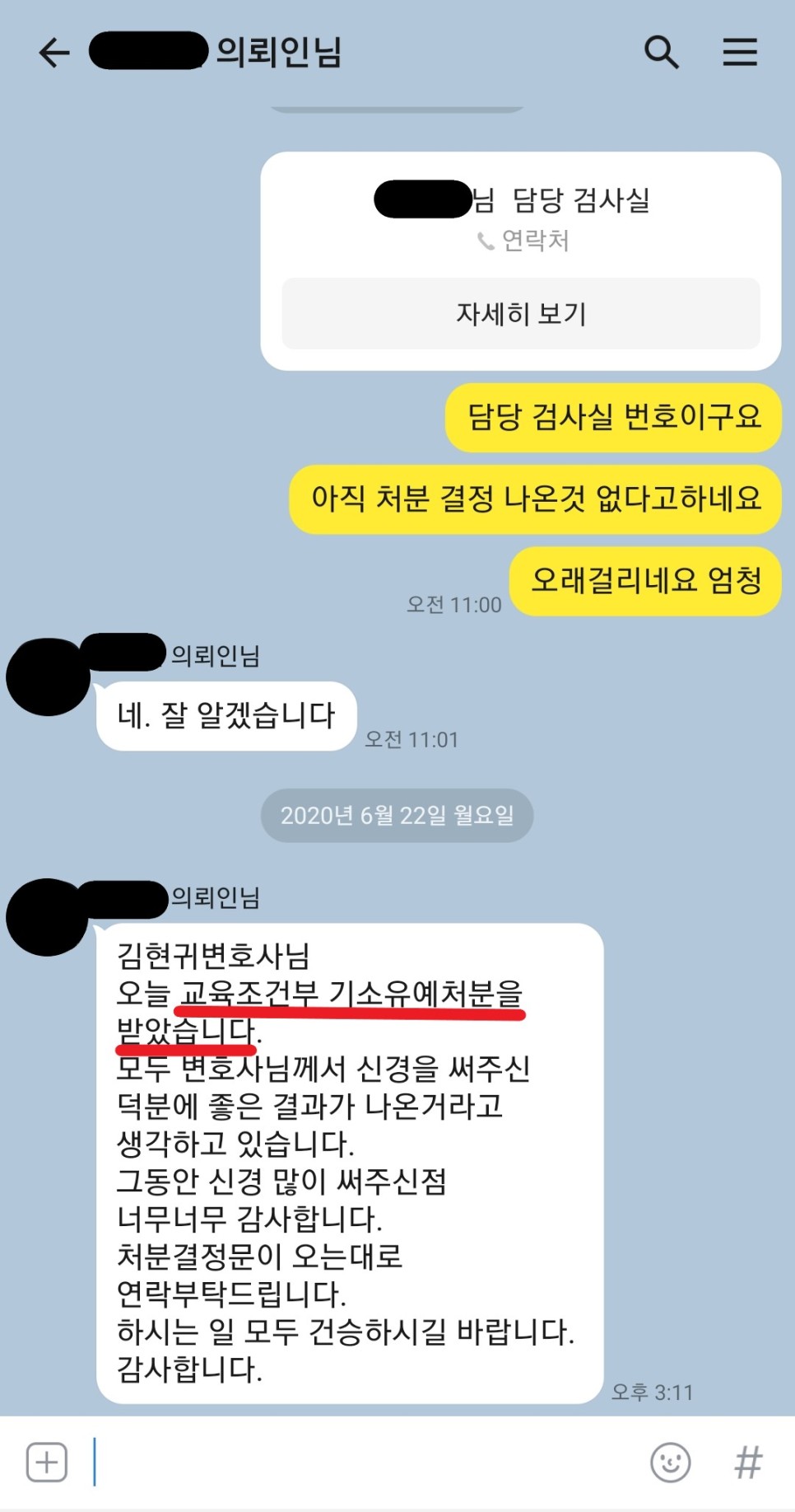 [기소유예 결과를 통지 받은 후 의뢰인과 나눈 대화]