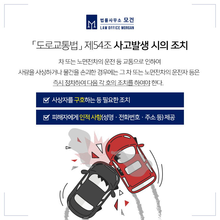 뺑소니는 교통사고를 낸 후 가해 차량이 도주하는 것을 말합니다. 뺑소니 처벌을 규정하고 있는 「특정범죄가중처벌법」 제5조의3(도주치사상)은 사고를 낸 운전자가 피해자를 구호하는 등 「도로교통법」 제54조 제1항(사고발생시의조치)에 따른 조치를 취하지 않고 도주한 때에 성립하는데요.
