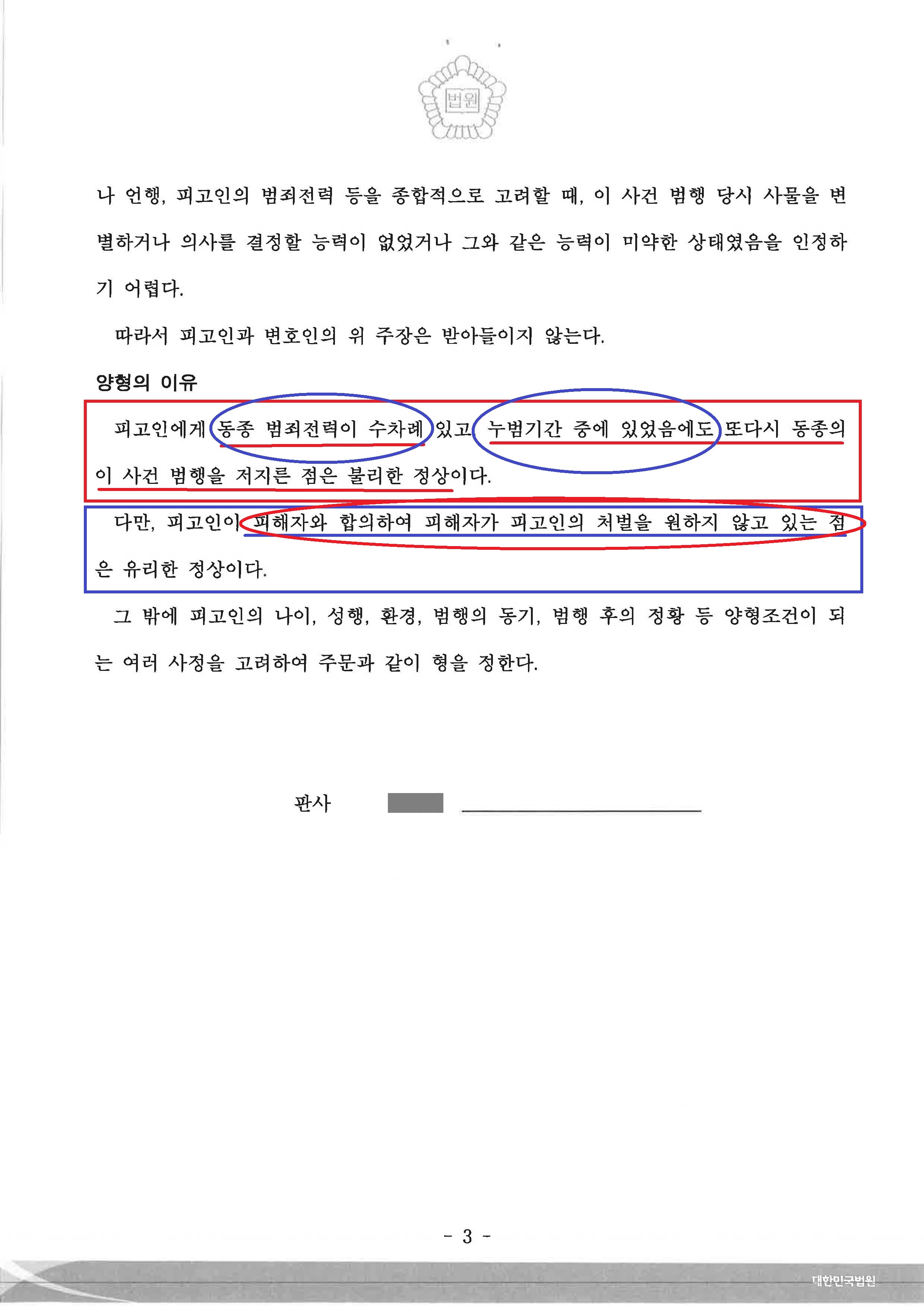 결국 수차례 동종 범죄전력과 누범기간 중 범행으로 실형에 처해질 수 있었지만, 부유 법률사무소의 노력으로 피해자와의 합의에 성공하여 실형을 피하고 벌금형으로 방어하여 사건을 마무리 할 수 있게 되었던 것입니다.